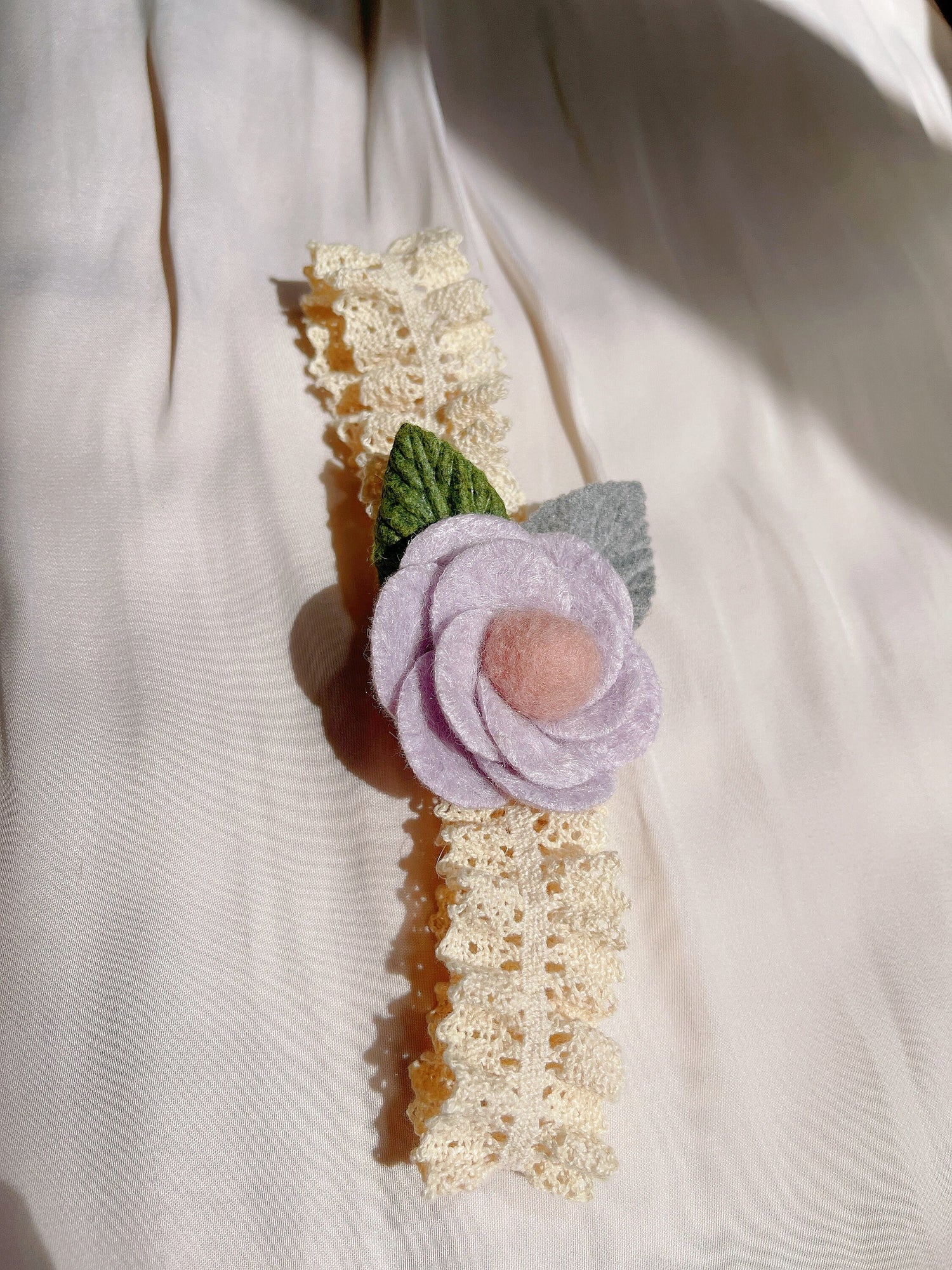 flower headband. Attached to a one size fits all nylon headband. Our nylon headbands are great for 3 months - 2 years old