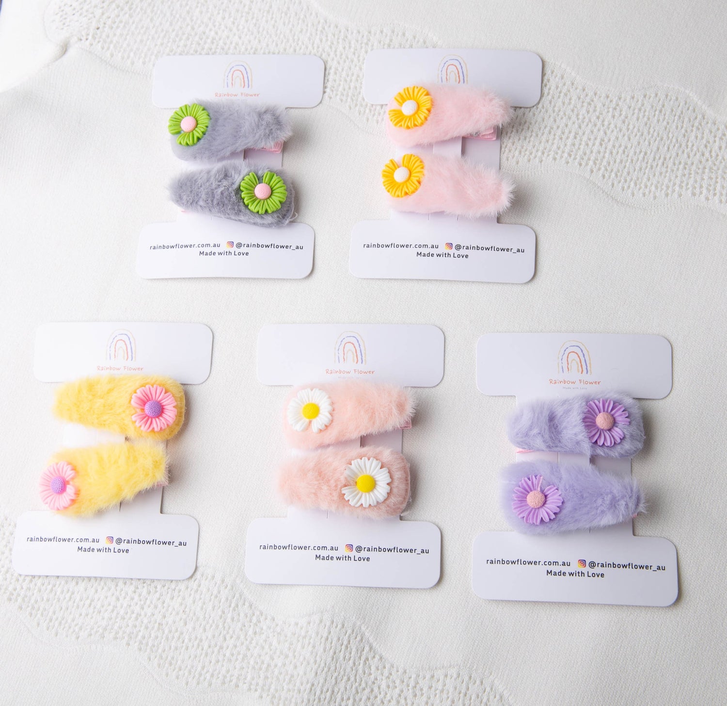 5 colors Fluffy Flower daisy Hair Clip, Furry Hair Clip, hair accessory, girl toddler clip, autumn winter clip Fluffy Faux Fur Hair Clip