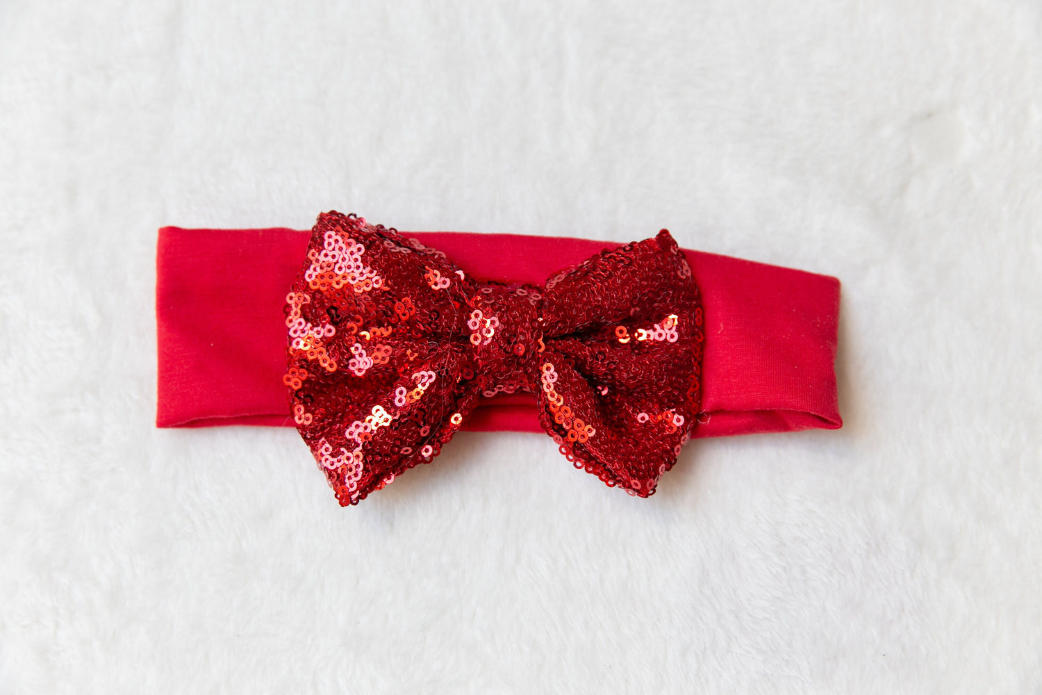 Baby Bow headband Oversized Glitter big large Sequin Hair toddler girl Bow headband Rainbow Bowknot, red silver pink black white