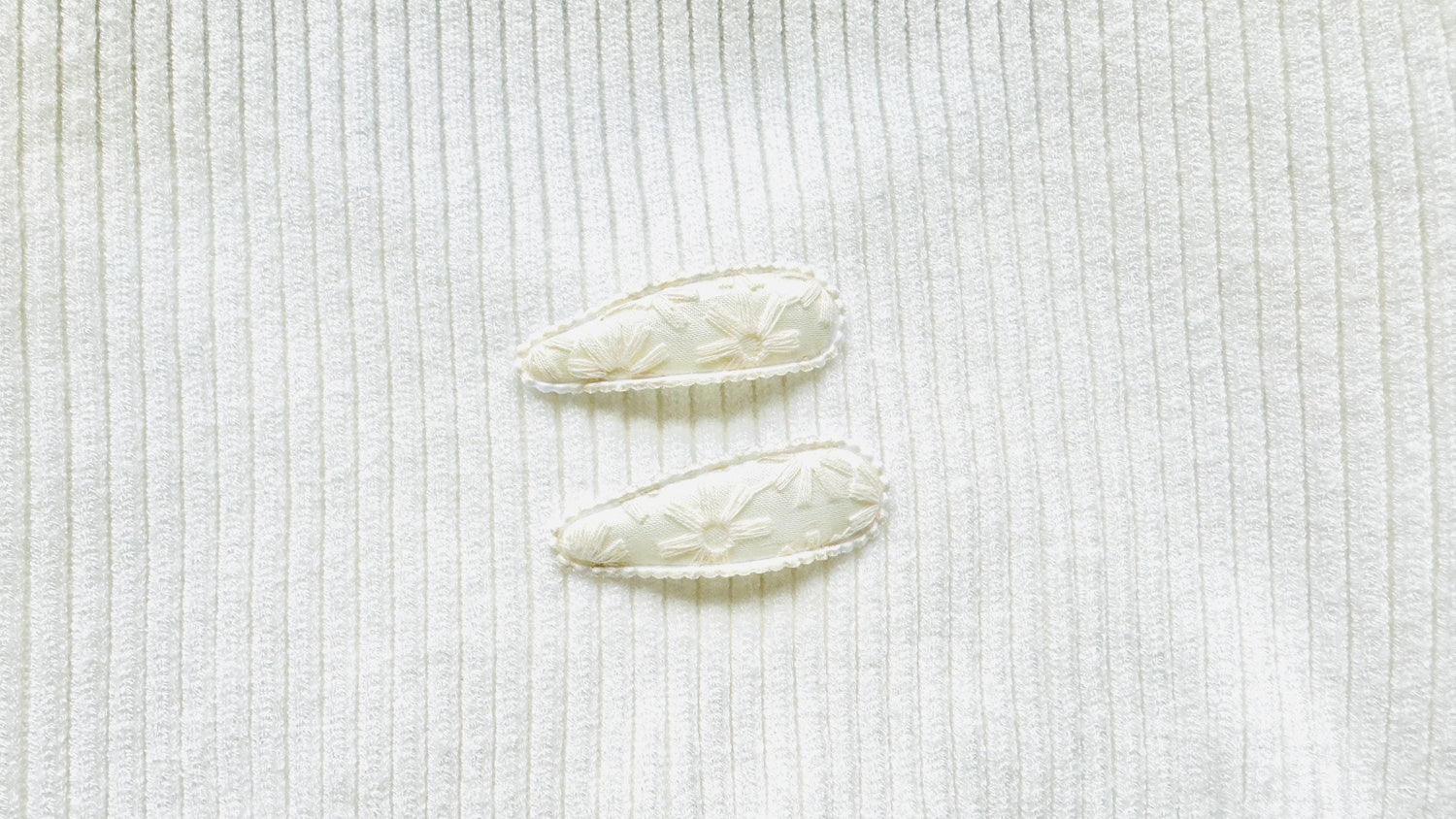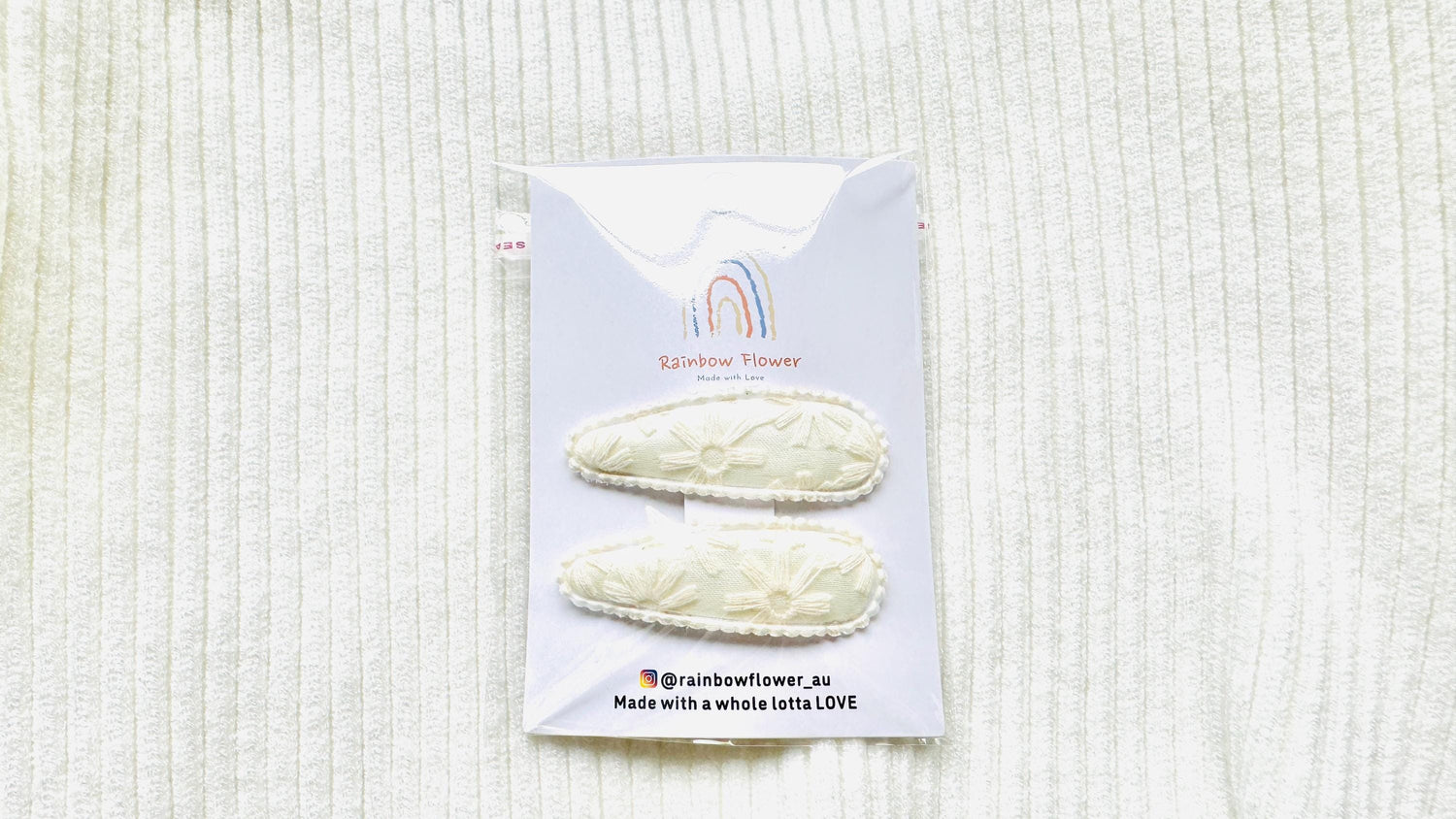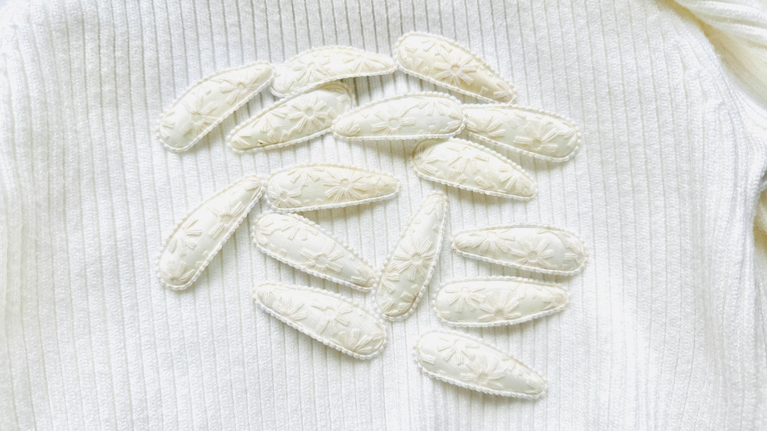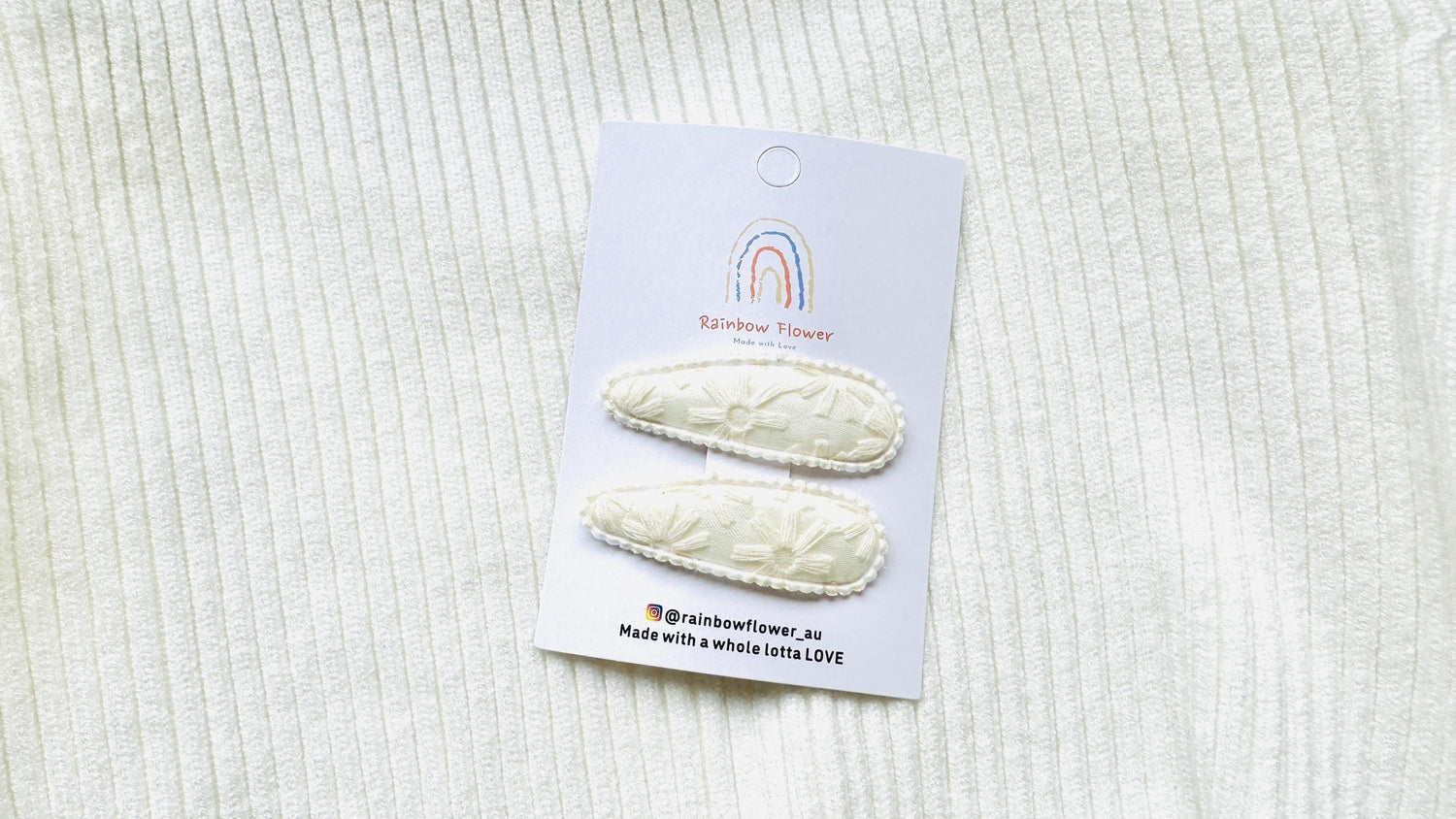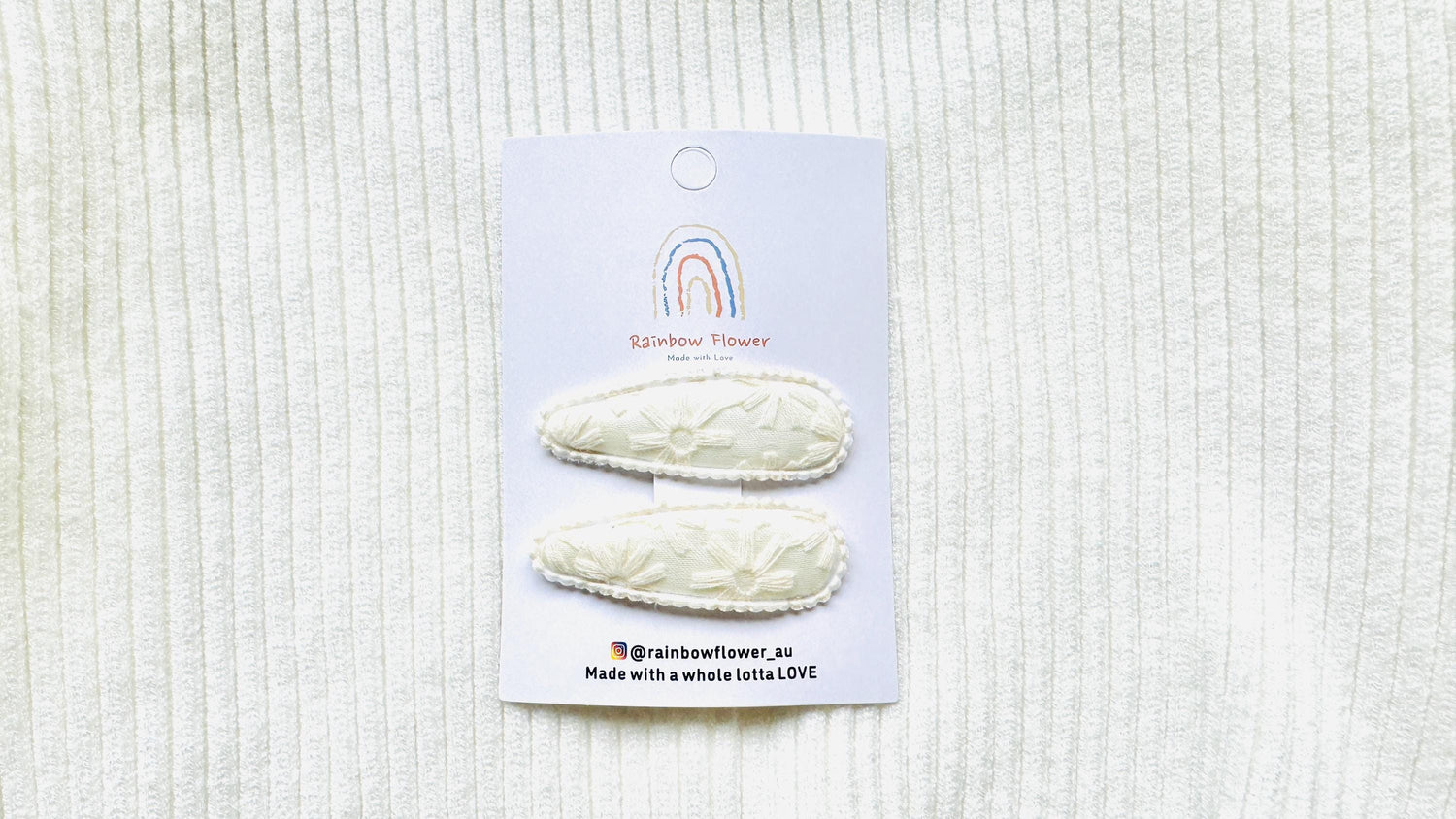 Baby Toddler girl white hair clip, embroidered flower Hair Accessories Fabric Slide Clips Unique beautiful baby hair accessories