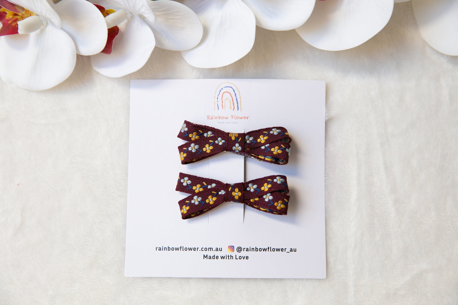 Baby Toddler hair Clip sets, Infant Girl Fringe Clips, Cute pink red earthy tone floral alligator clips set, baby bow clip Pigtail hair bow