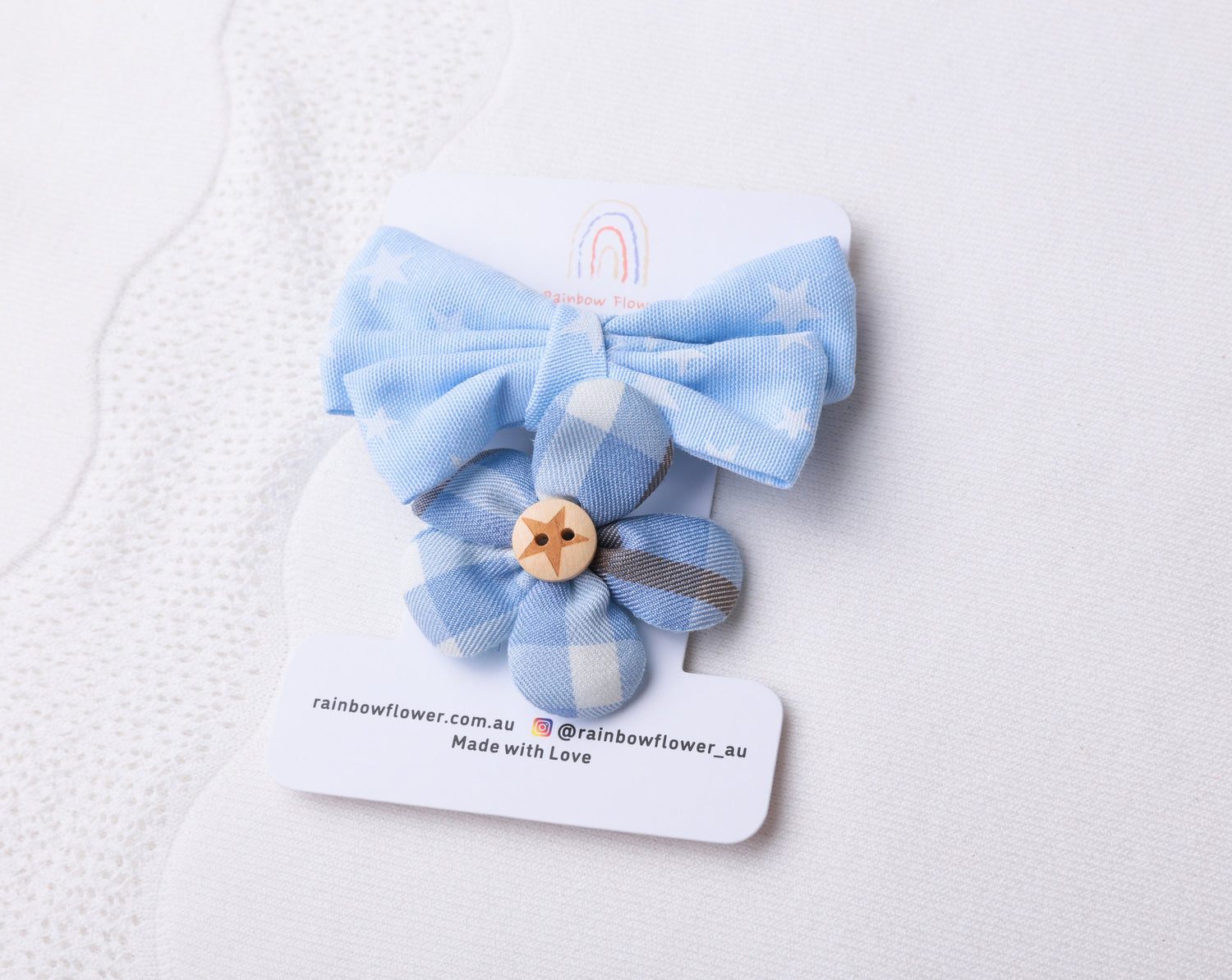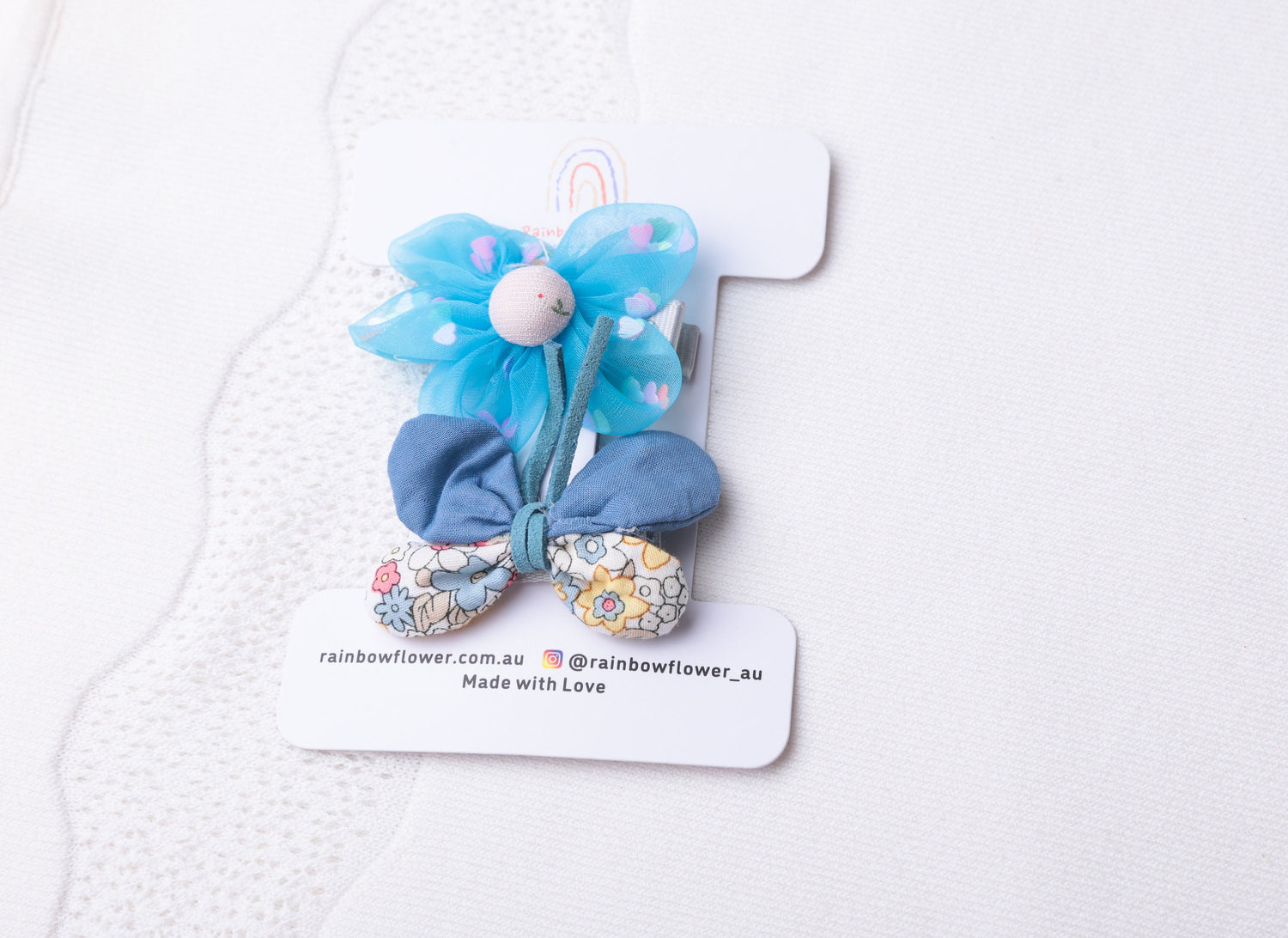 Blue hair bows clips Baby Infant Girl Toddler Boutique unique Snap Clip, fringe clip butterfly flower linen Hair Clip baby shower gift