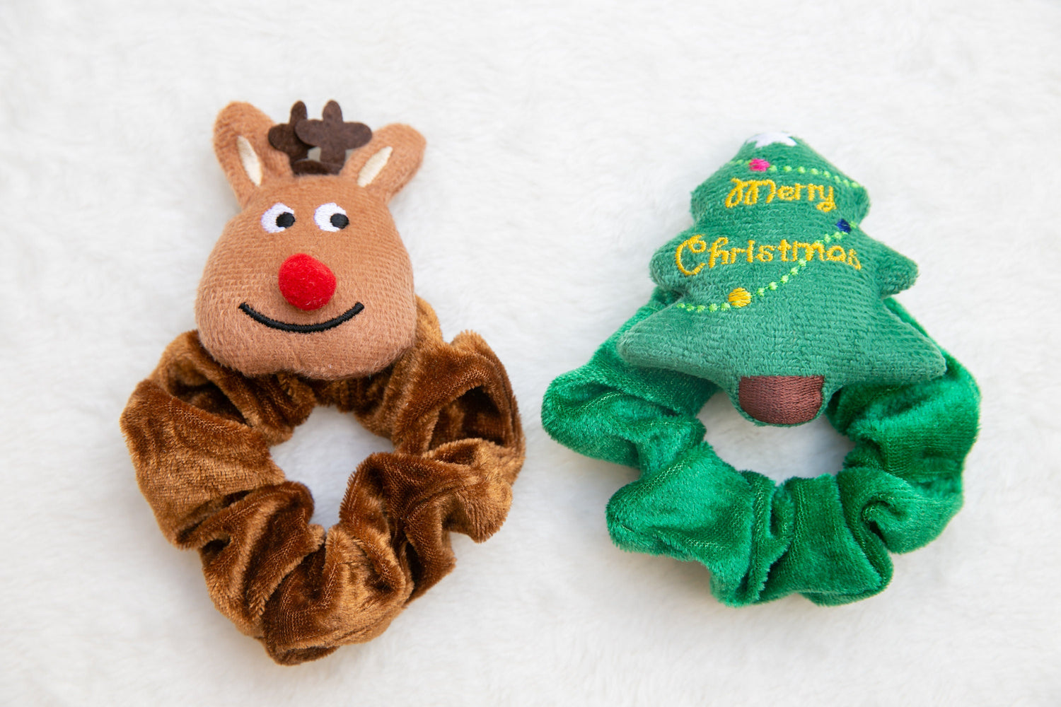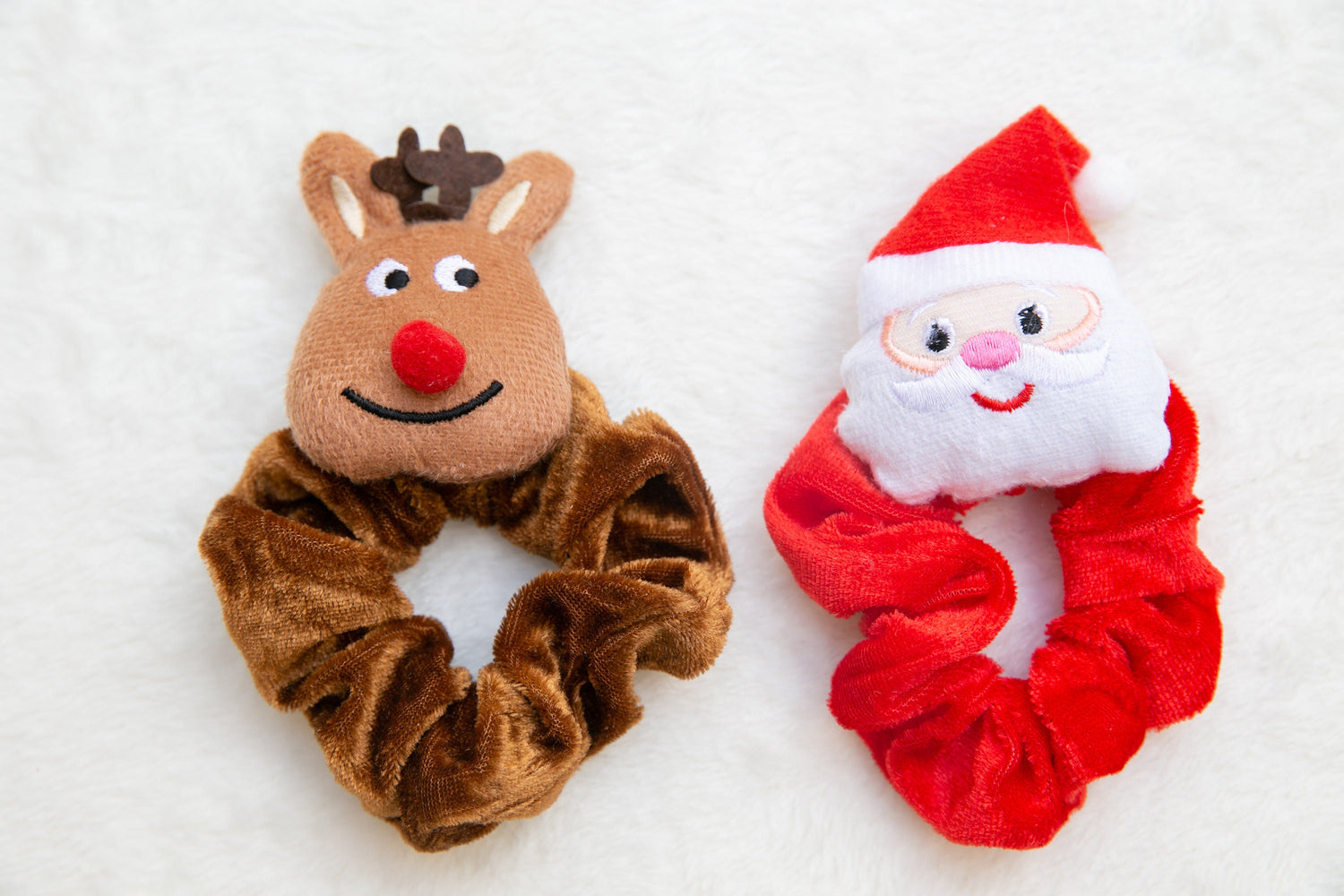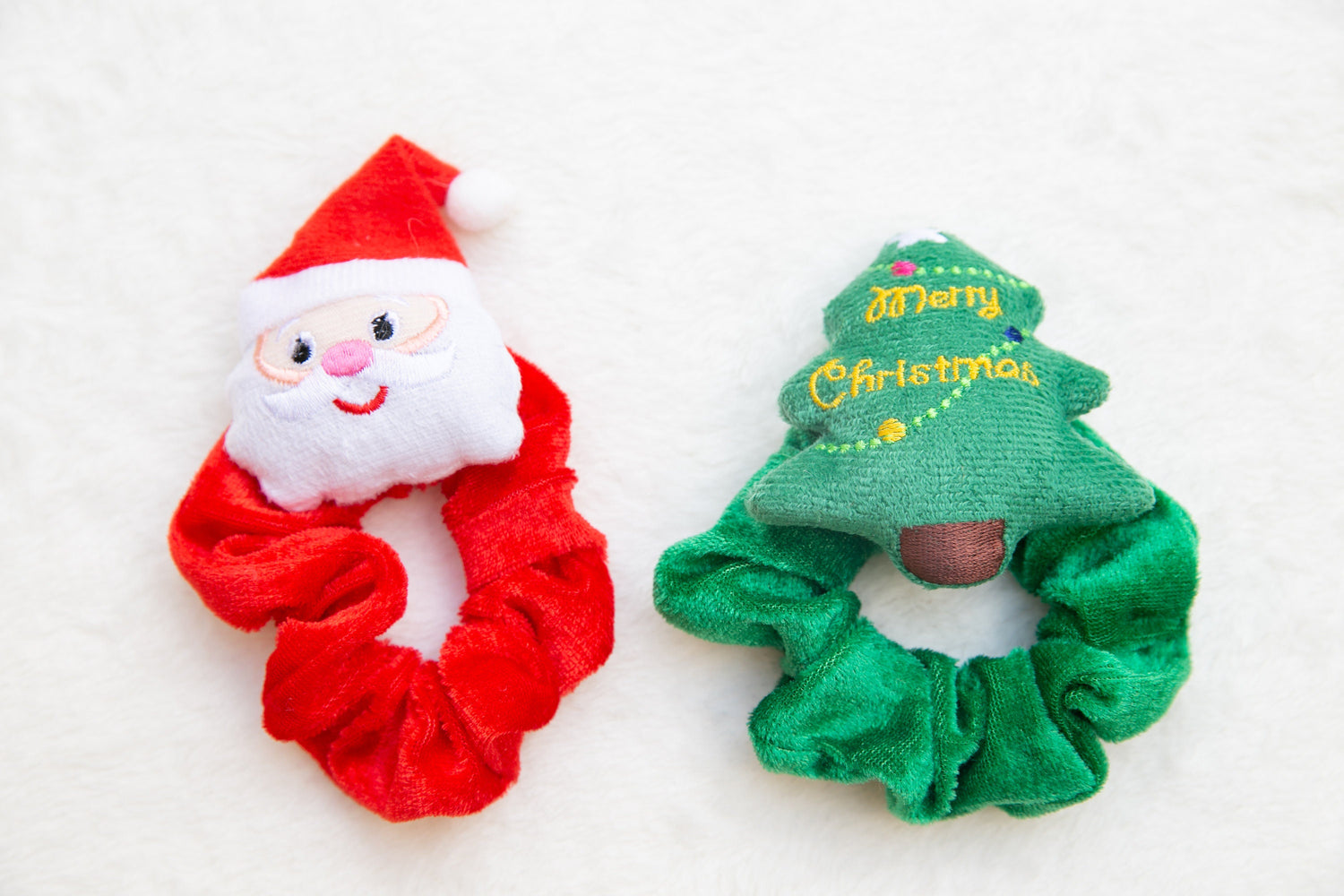 Christmas hair ties for toddler teen girls, Santa reindeer Christmas tree elastic hair tie red green festival party accessory