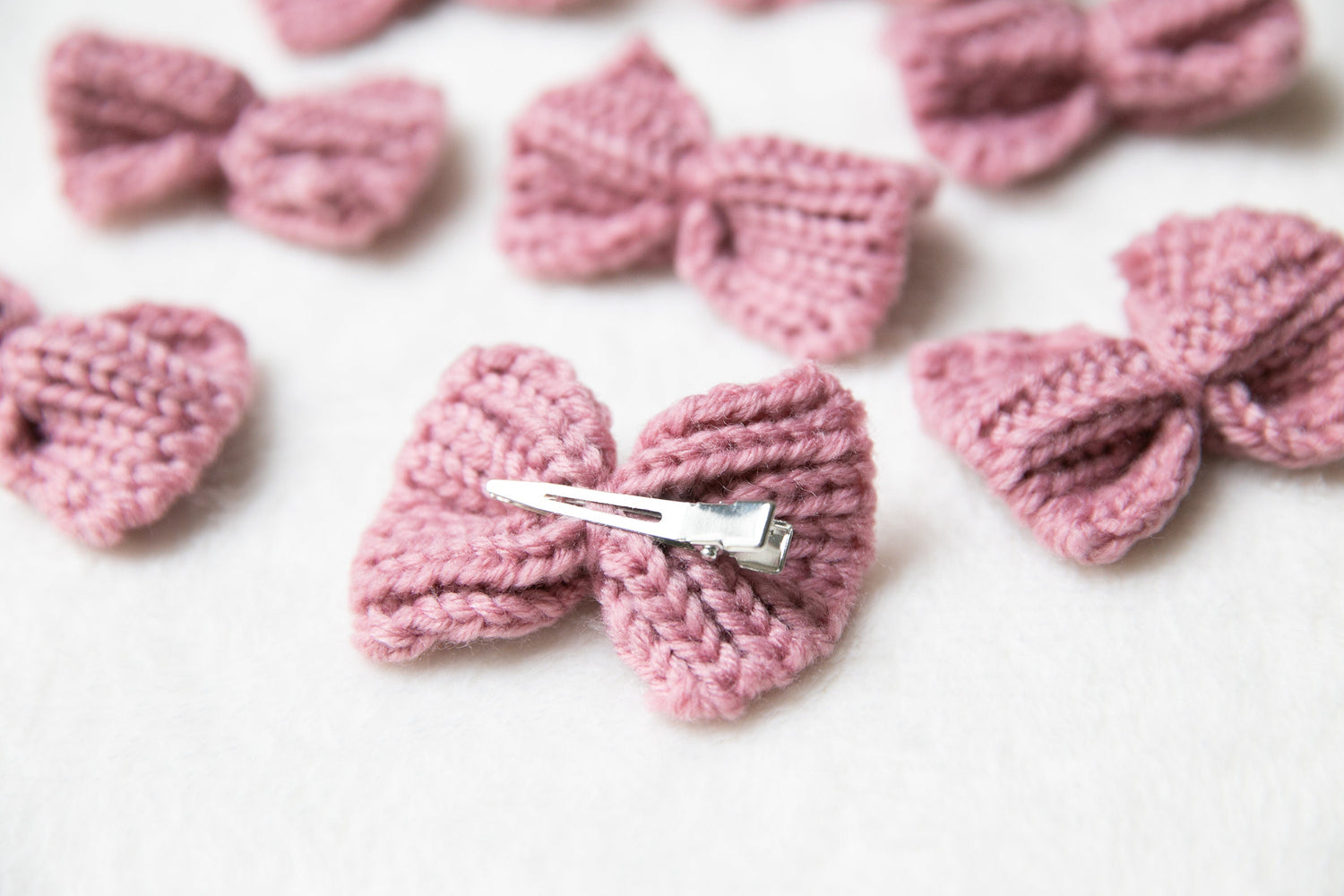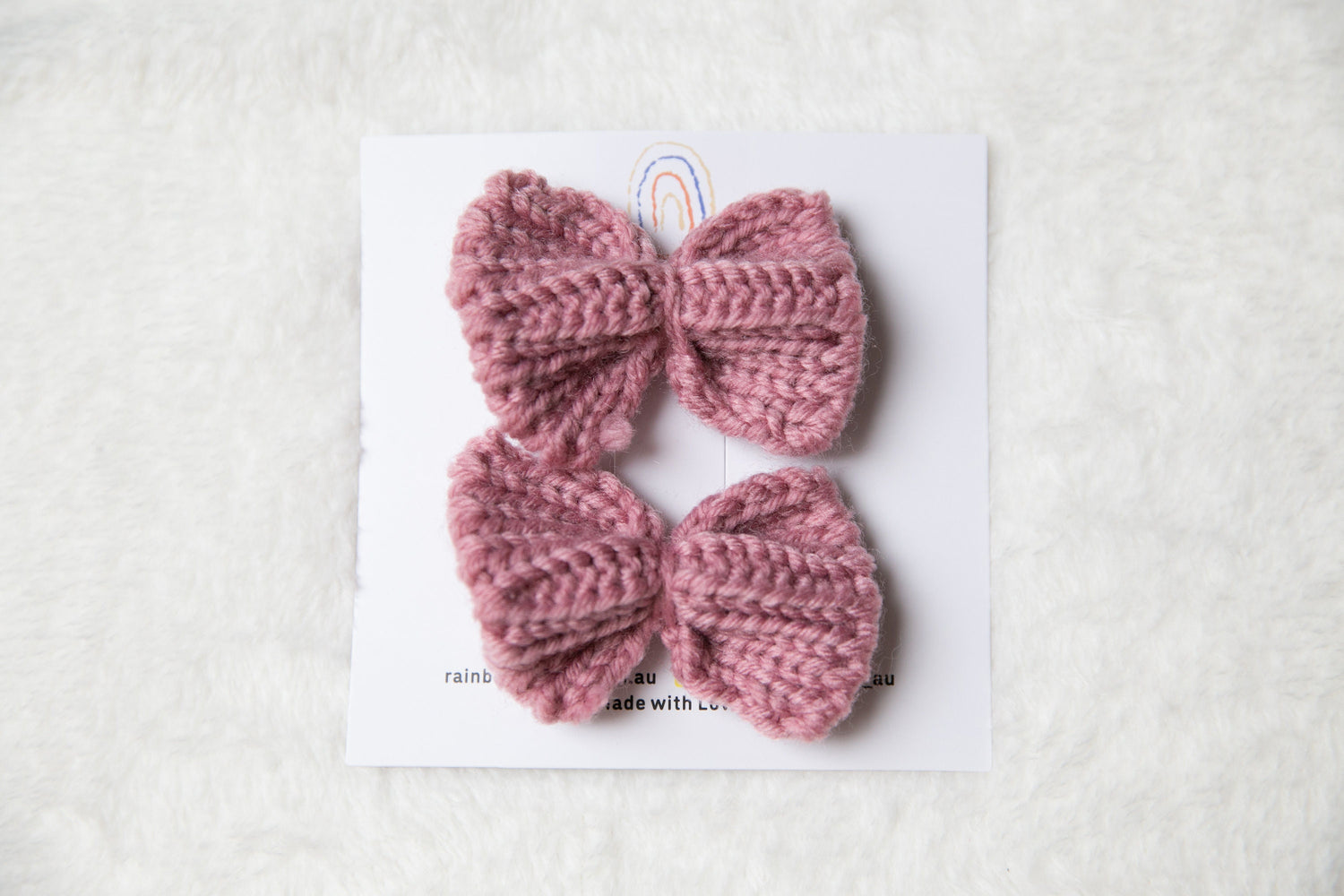 Crochet bow hair clip, knitted bow, knitting hair accessories, girls bow, made in australia, hand knit bow, toddler bow hair clip, pink bow