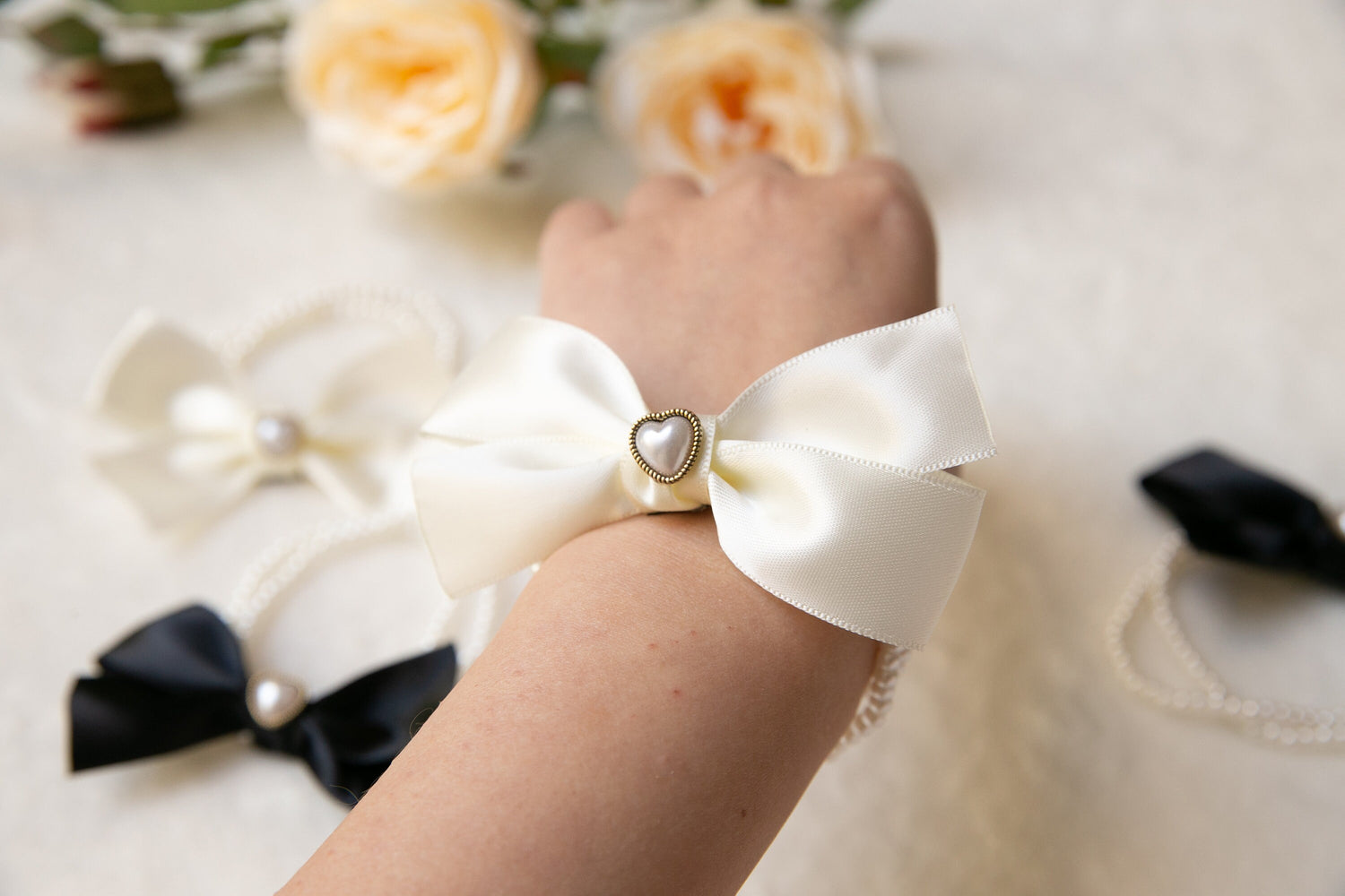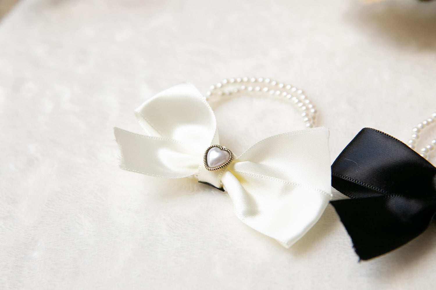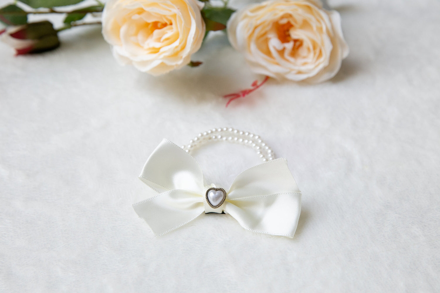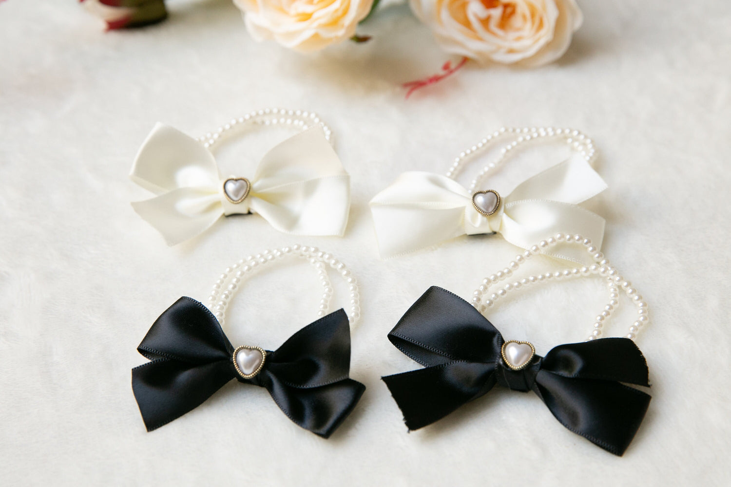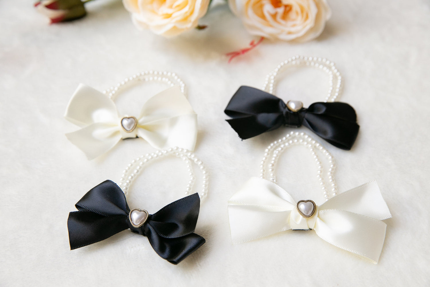 Elegant pearl black and white bow elastic hair ties, classic minimalist Minimalism ribbon heart shape hair ties, not real pearl