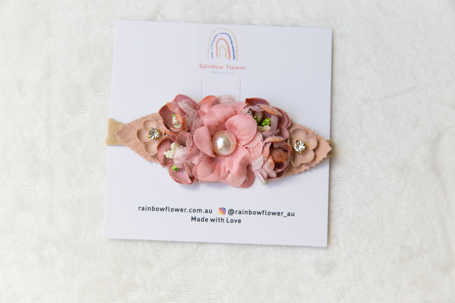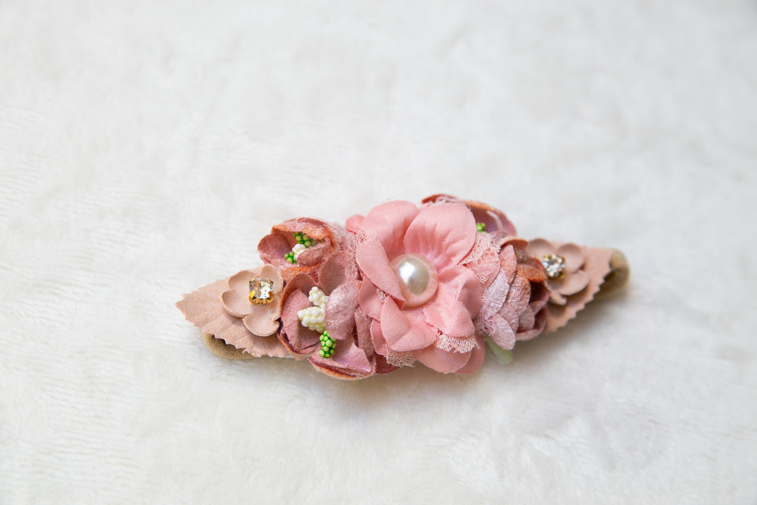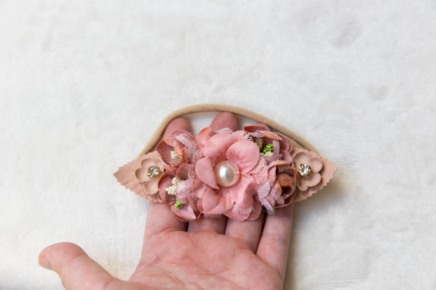 Exquisite Floral Baby toddler flower headband, flower girl headband, infant girl flower crown, baby shower gift pink beige peach headband