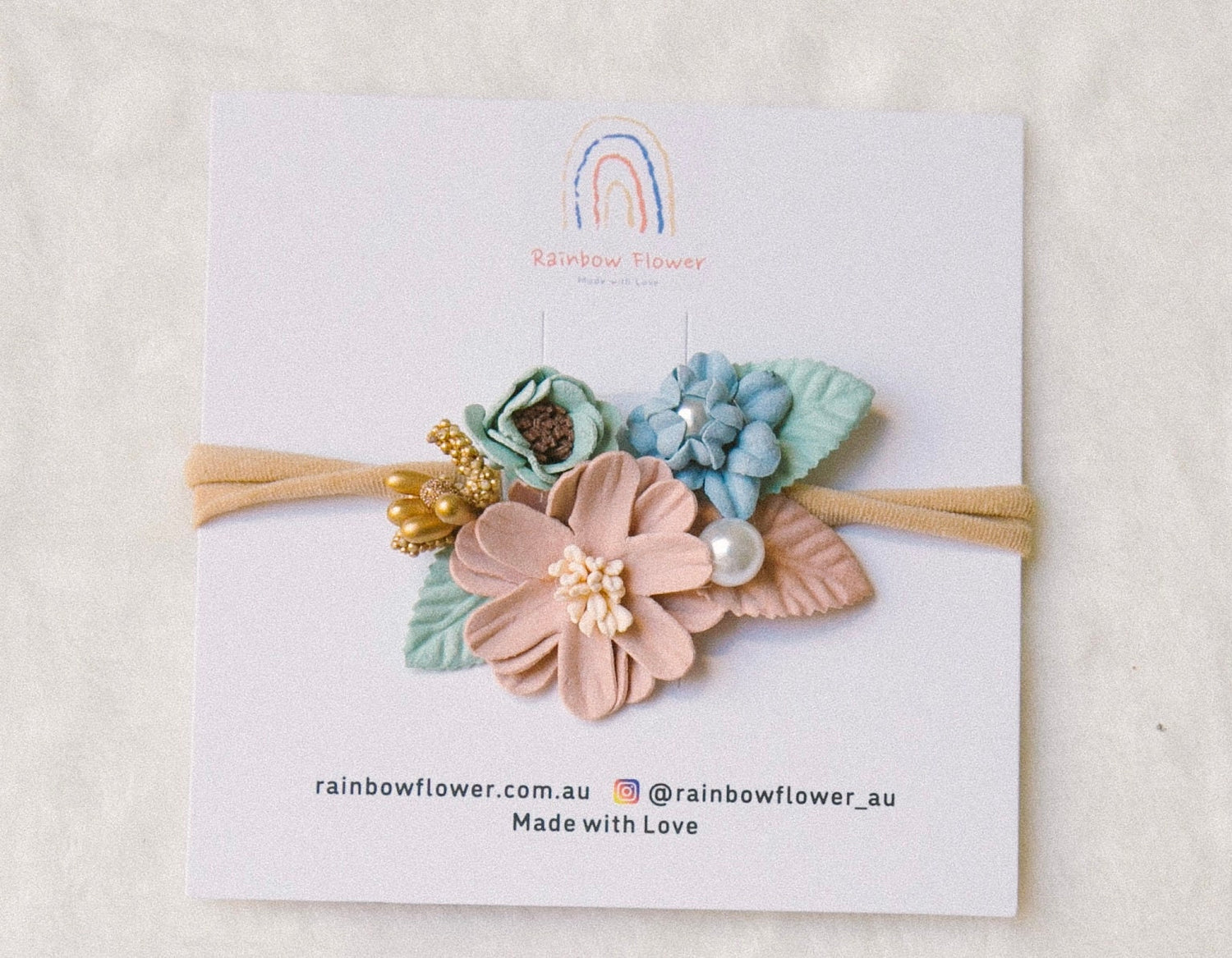 Floral Baby toddler flower headband, flower girl headband, baby flower crown, baby shower gift neutral colours pink white headband gift