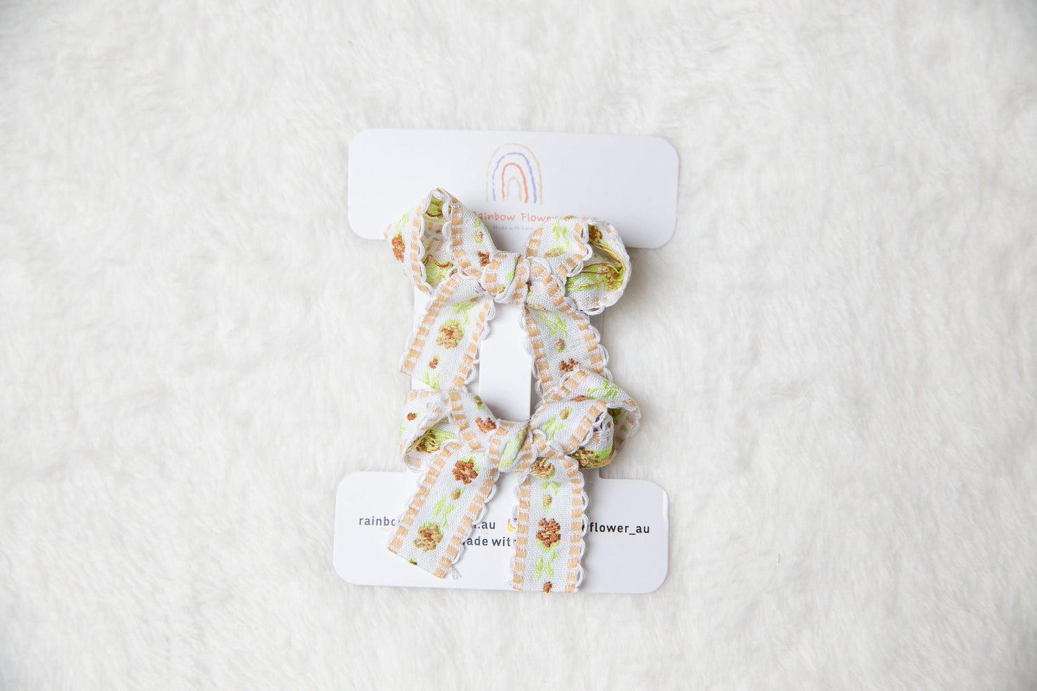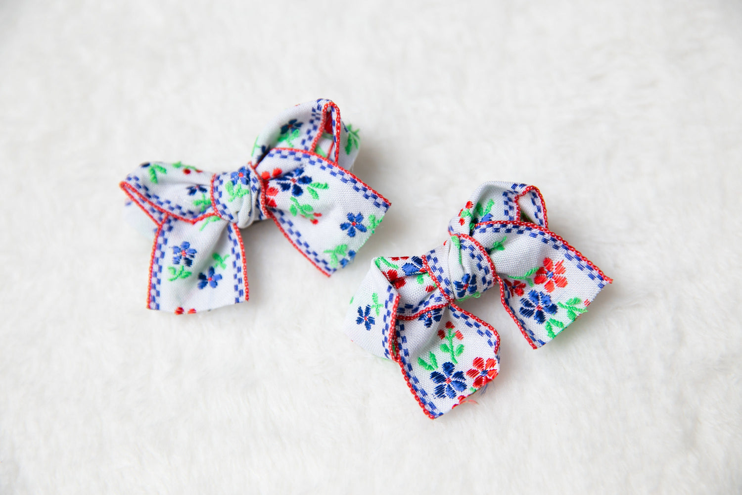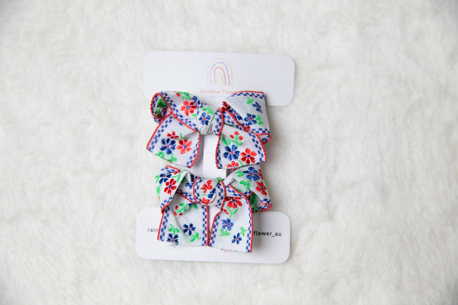 Flowers Embroidery Bow Hair Clips, Unique gift for Toddler girls, Hair Pin Aussie made, girl hair clip set, Hand Tied Baby Bows
