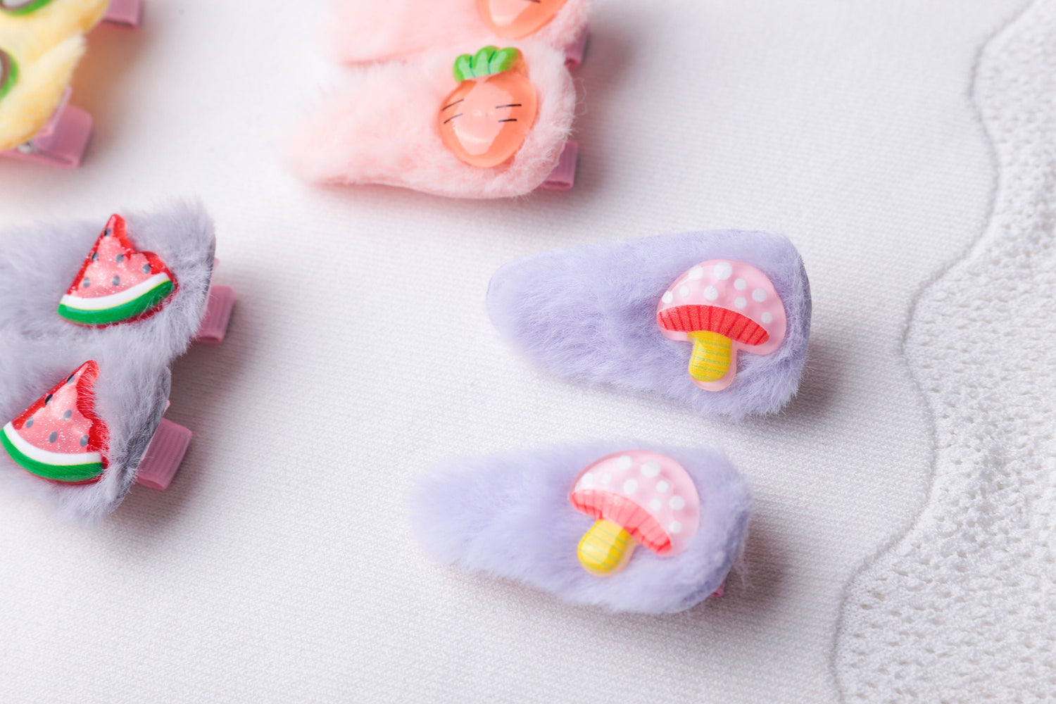 Fruits Hair Clip, Furry fluffy unique Hair Clip fot Baby Toddler girl, kiwi fruit strawberry mushroom carrot cherry kids children hair pin