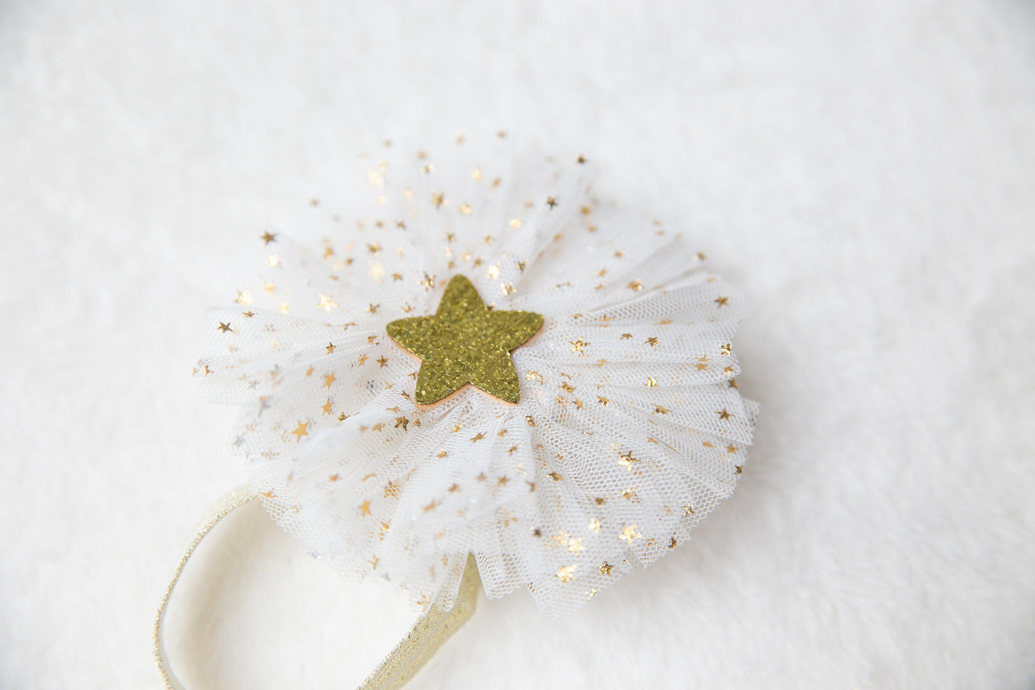 Golden star lace baby headband, toddler headwear headband, newborn headband photography props, one size fits all yellow headband