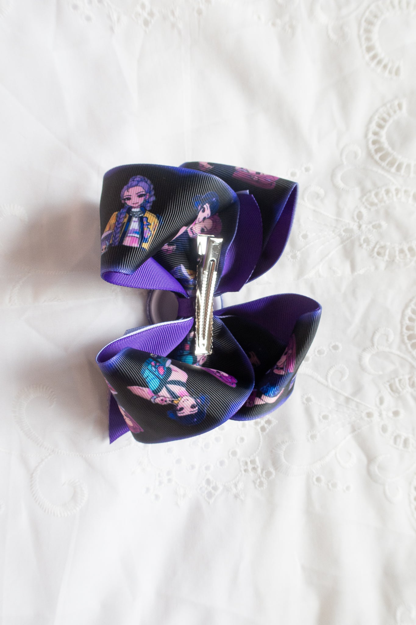 This handmade K-Pop Demon Hunter bow hair clip is carefully crafted with attention to every detail. Featuring vibrant artwork and a beautifully structured bow shape, it’s designed to be both eye-catching and durable.