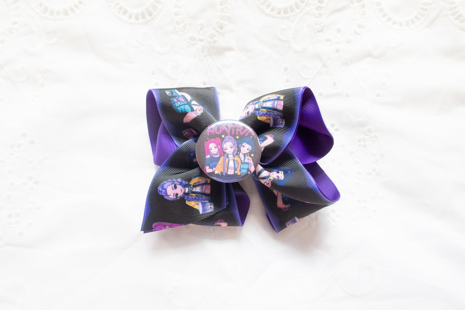 Handmade K-Pop Demon Hunter HUNTRIX Bow Hair Clip – Rumi, Mira, and Zoey Premium Quality, Large Statement Hair Accessory