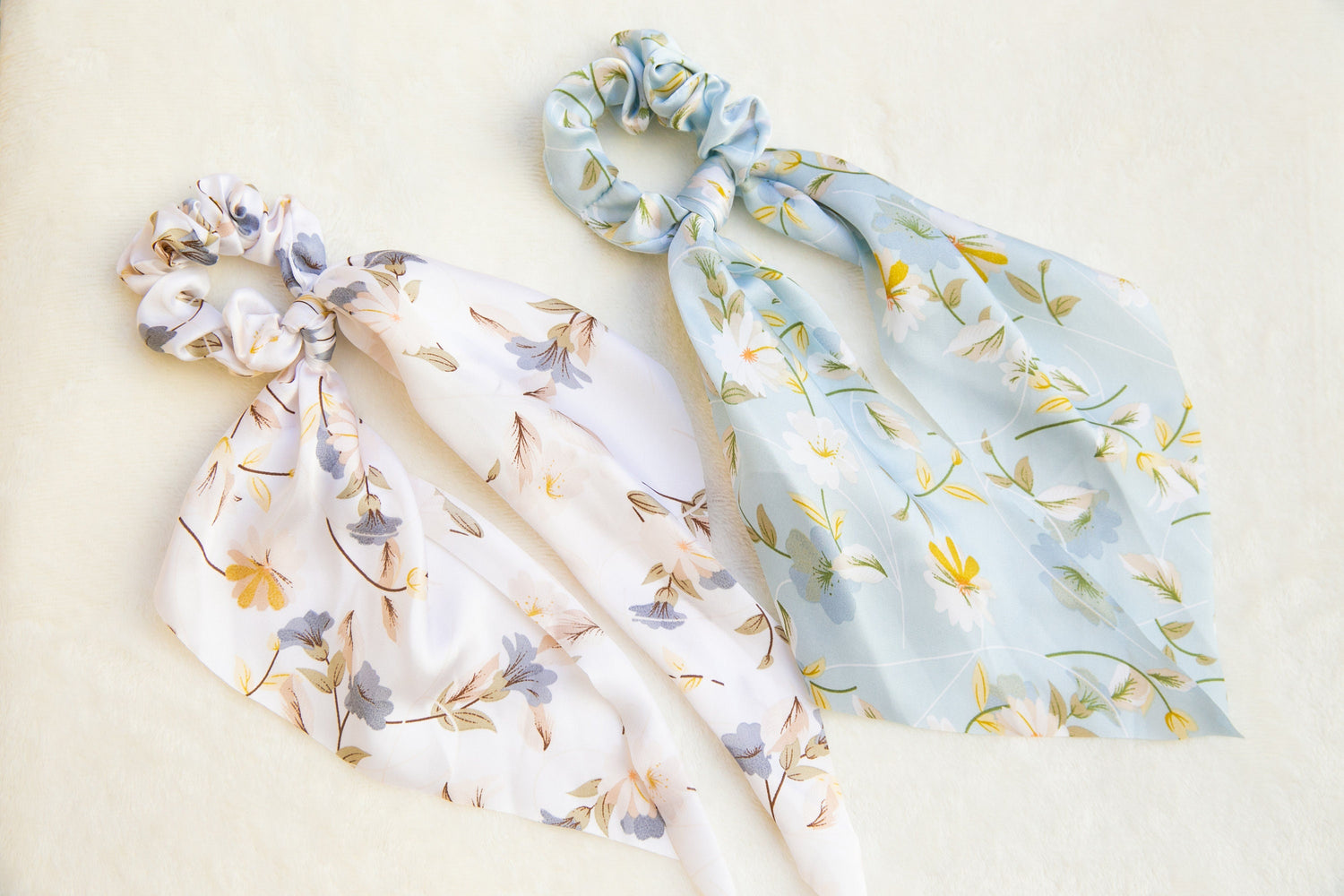 For both adults and girls! Very elegant and classic floral scrunchie scarf