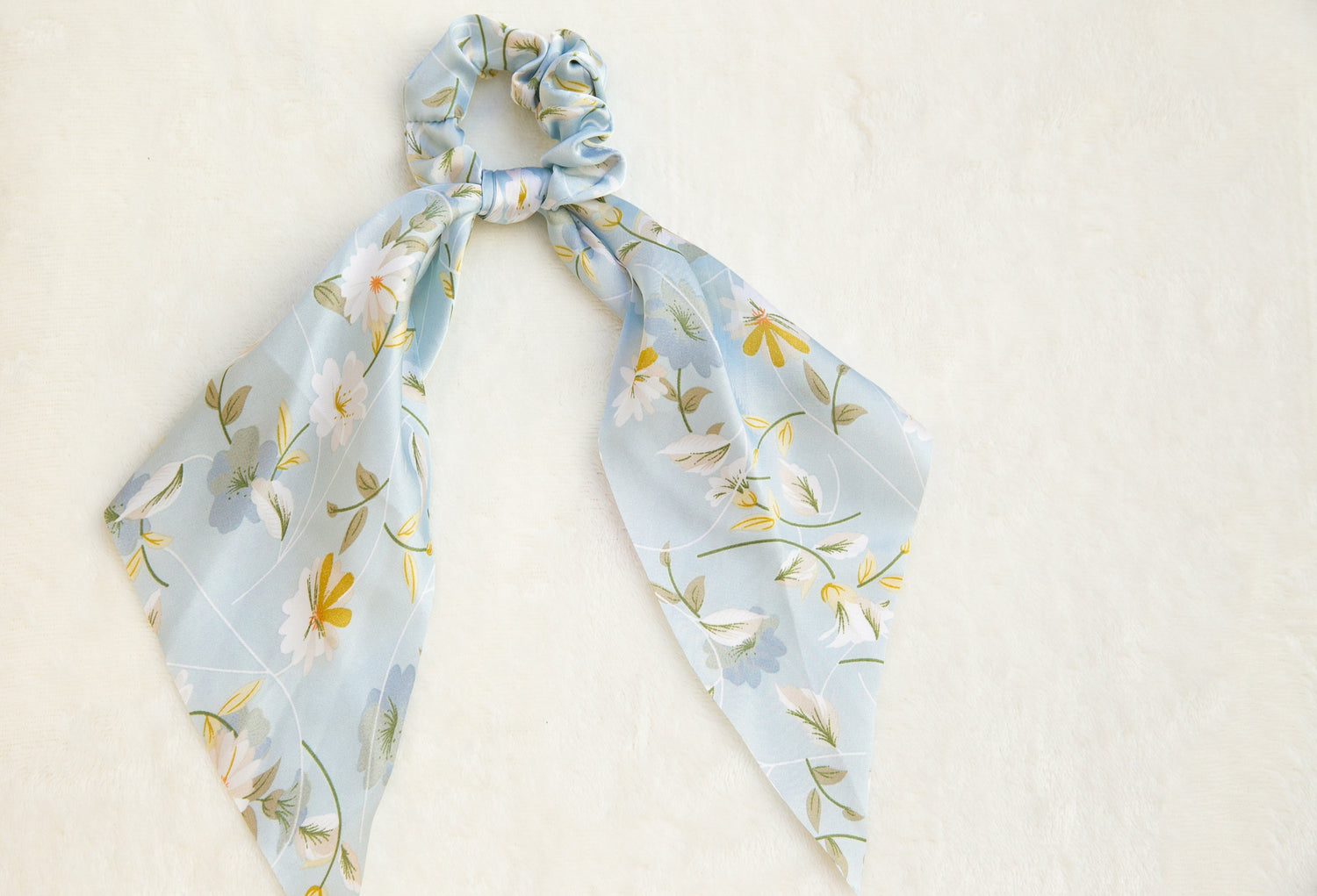 Holiday Vibe Floral Soft Satin Scarf Scrunchies, spring summer elegant Hair Scrunchies Scarf, Hair Scarf with knot, silky Elastic Hair Tie