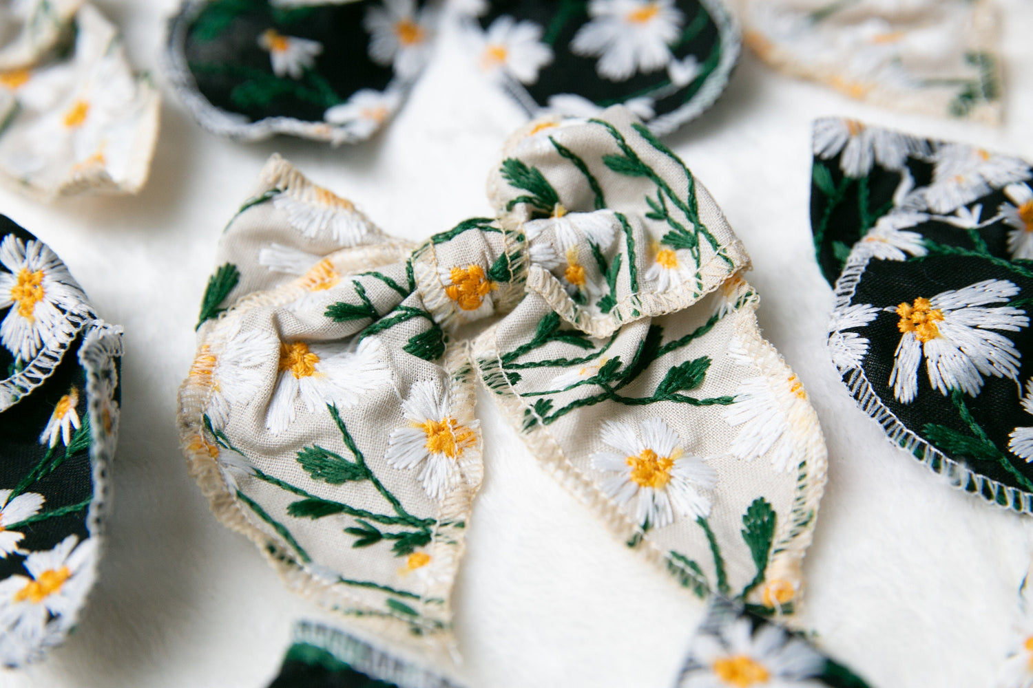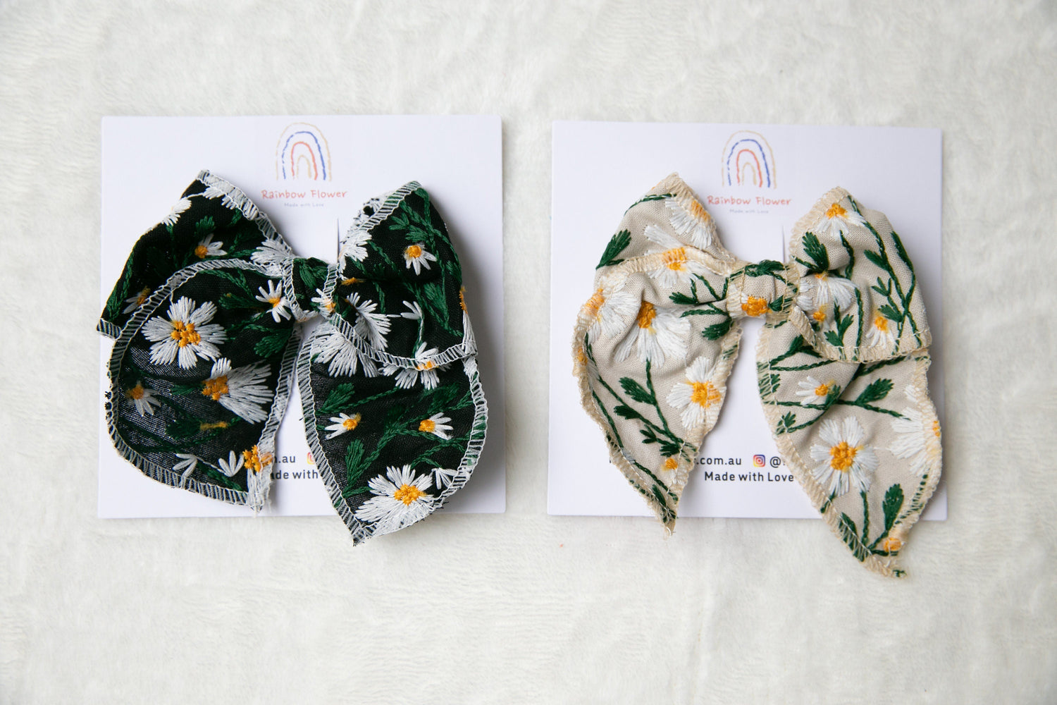 Oversize big Embroidered daisy floral hair clip for toddler baby girl kid, beautiful birthday party hair Accessory handmade bow hair clip