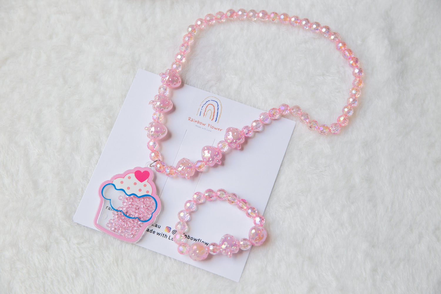 This pink ice cream design necklace and bracelet set is perfect to add to your princess jewellery box.