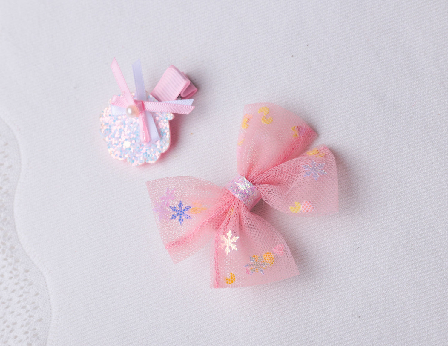 Set of 2, Pink Baby toddler bow Hair clips set, glitter shell mermaid hair clips, kids birthday party gift, perch hair clips for girl kids