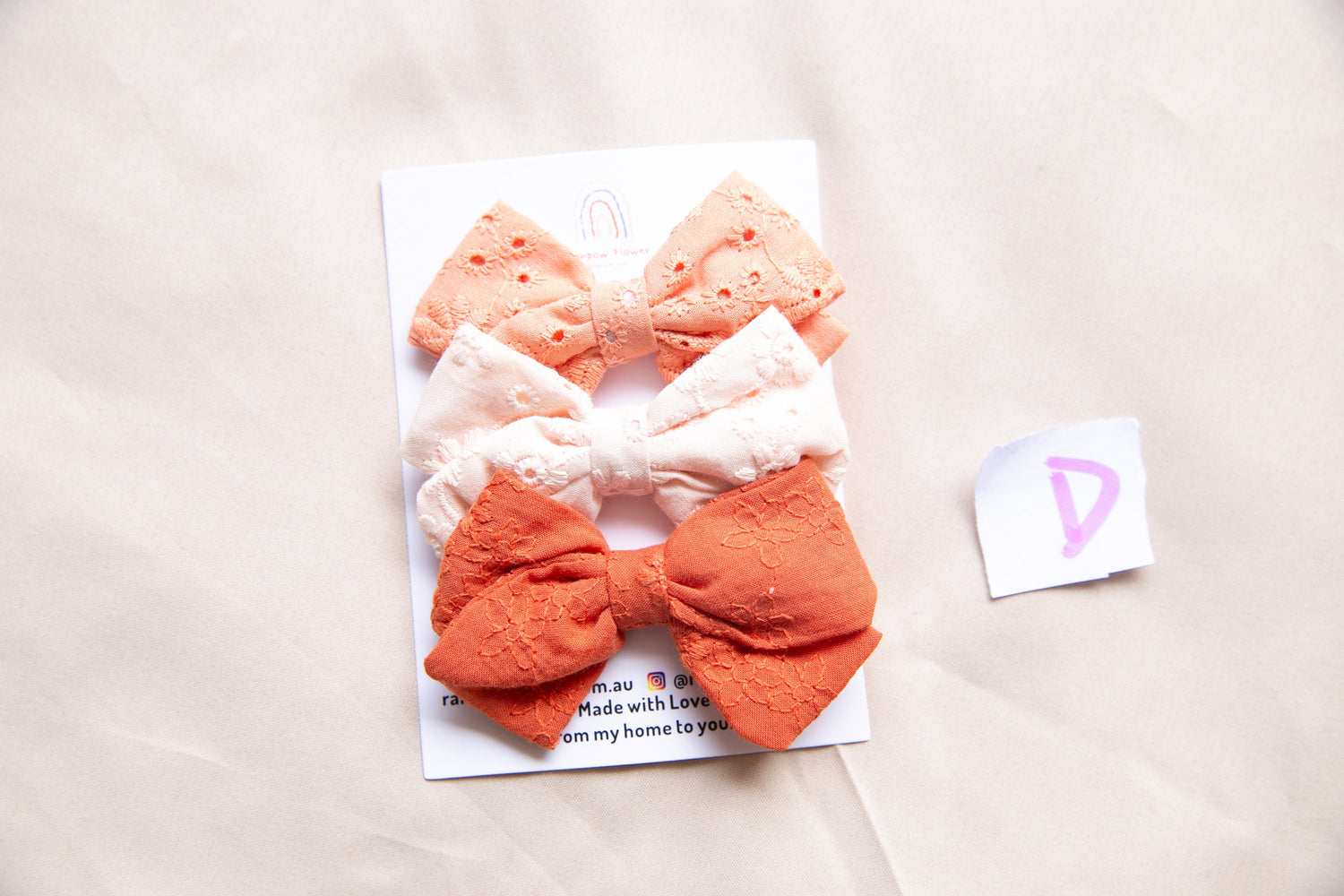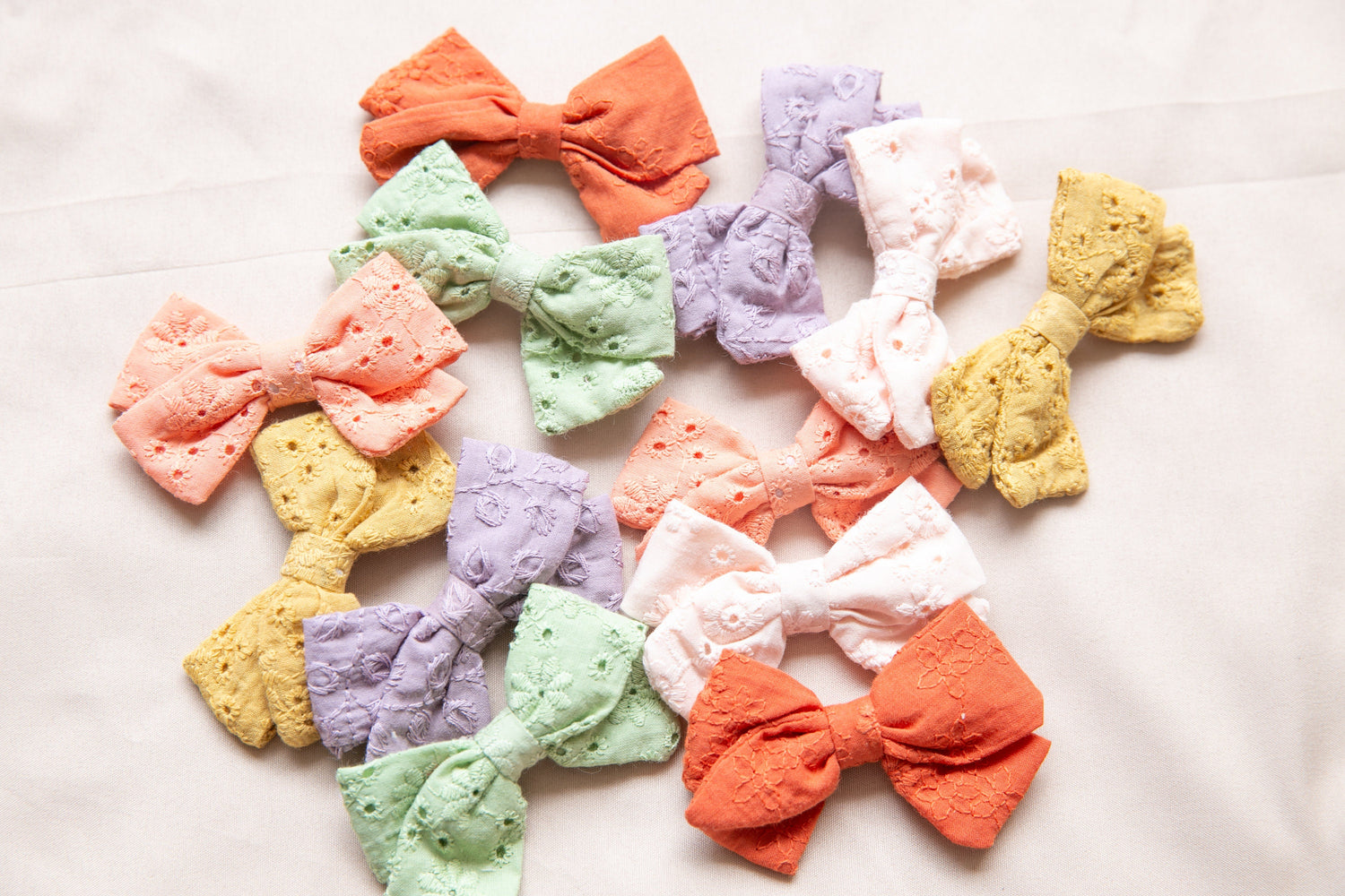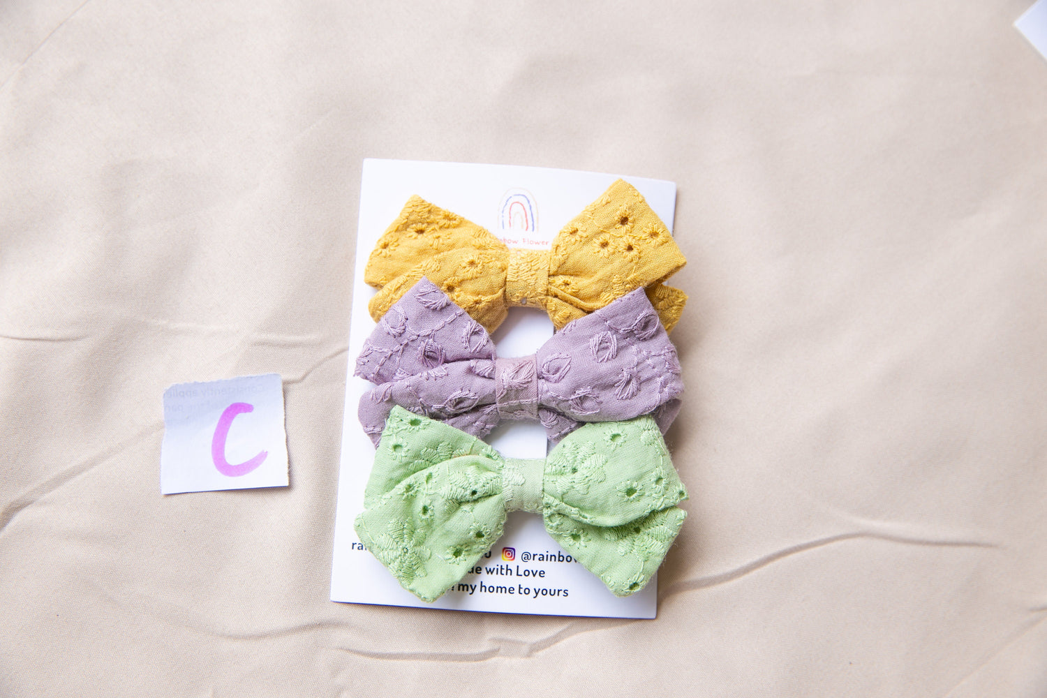 set of 3 high-quality hair clips made from exquisite embroidered pure cotton fabric. These adorable flower embroidery bow clips are designed for baby girls, toddlers, kids, and students.