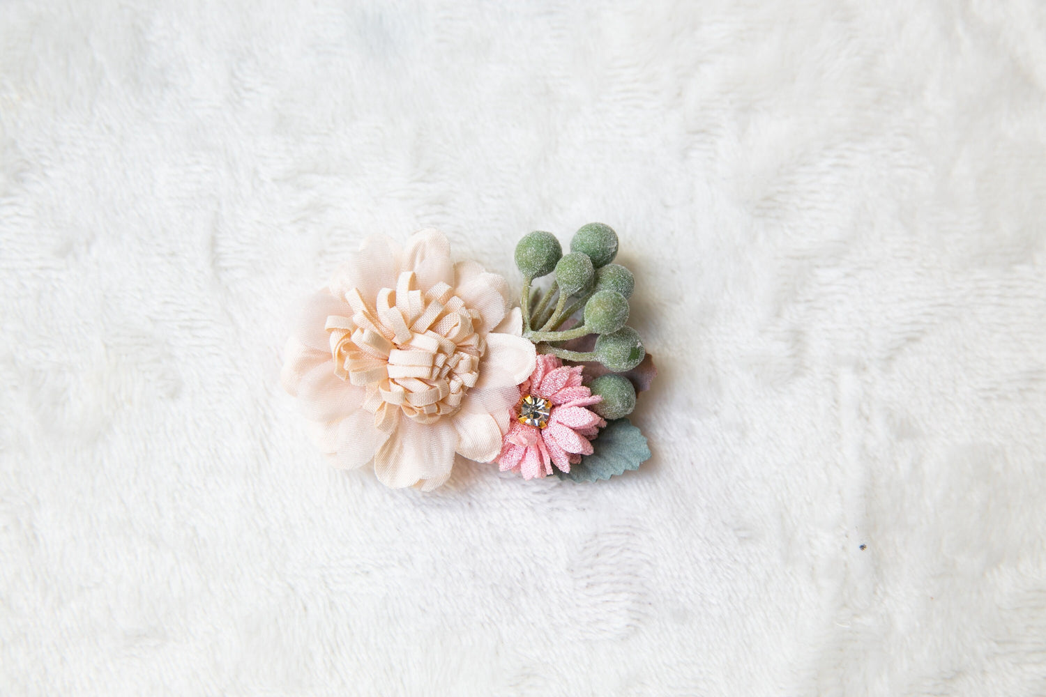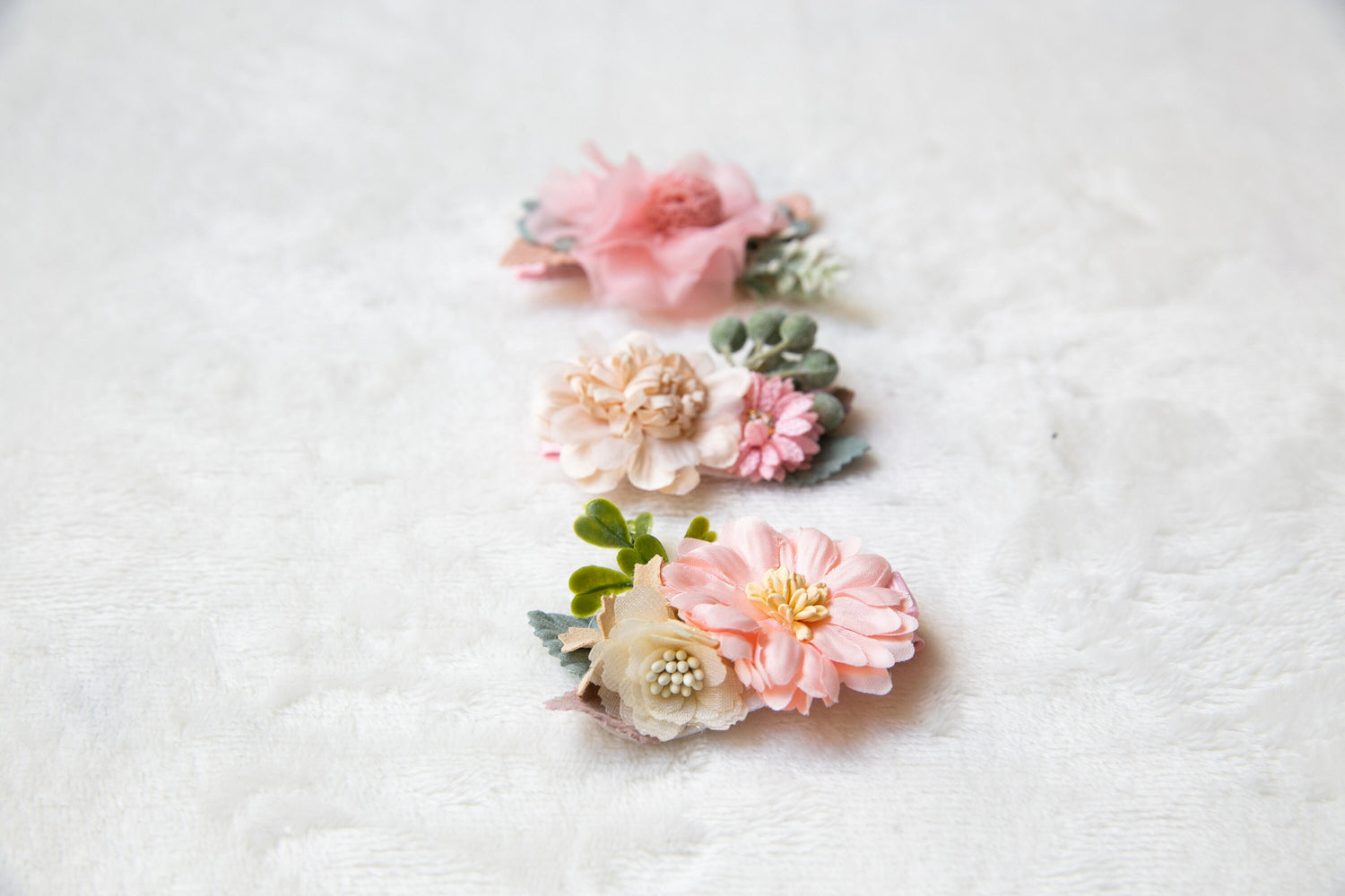 Soft Pink blooms clip, Wedding Flower girl hair clip, rose pink peach floral clips, christening hair, baptism hair, Wedding Hair Accessories