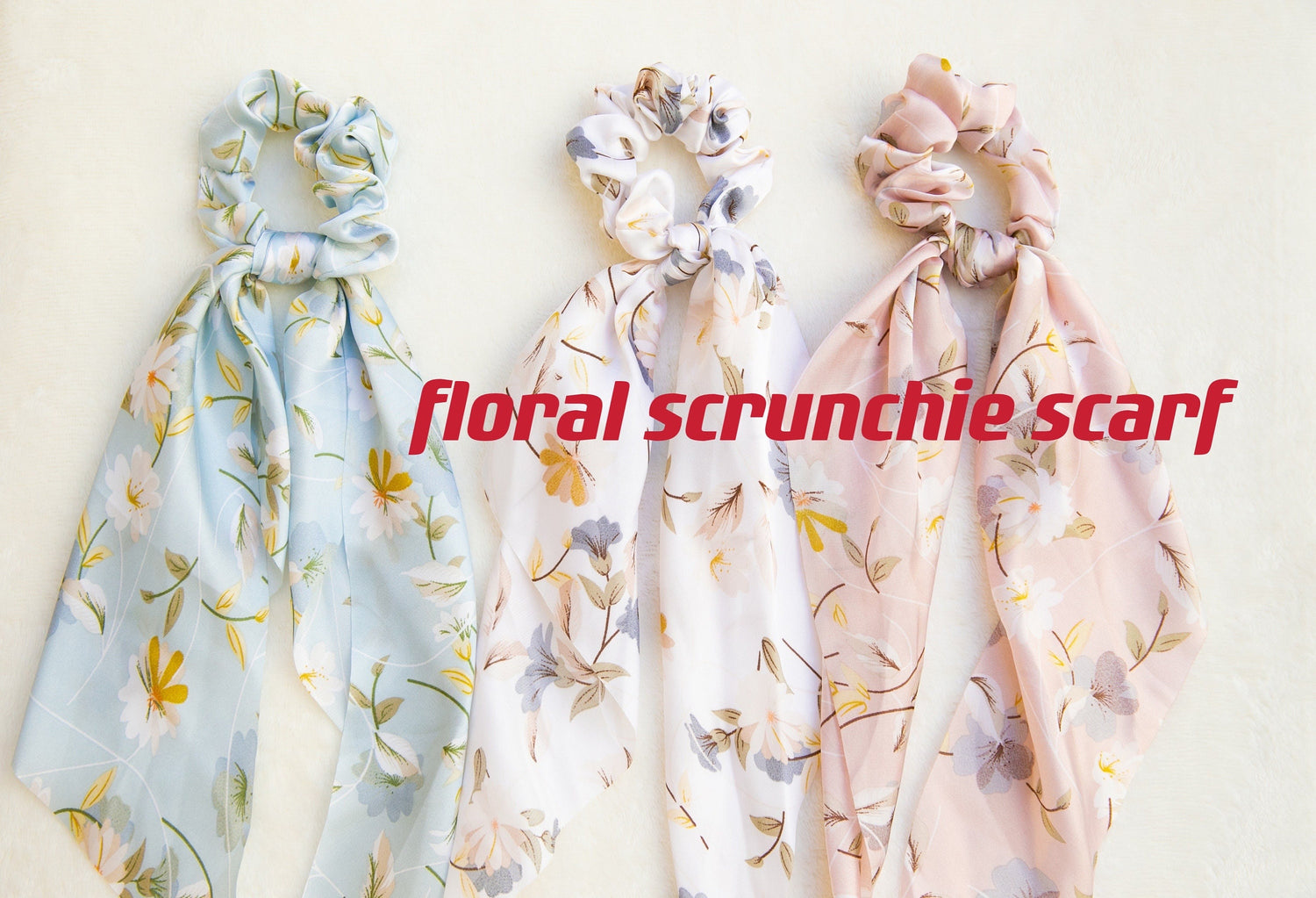 For both adults and girls! Very elegant and classic floral scrunchie scarf