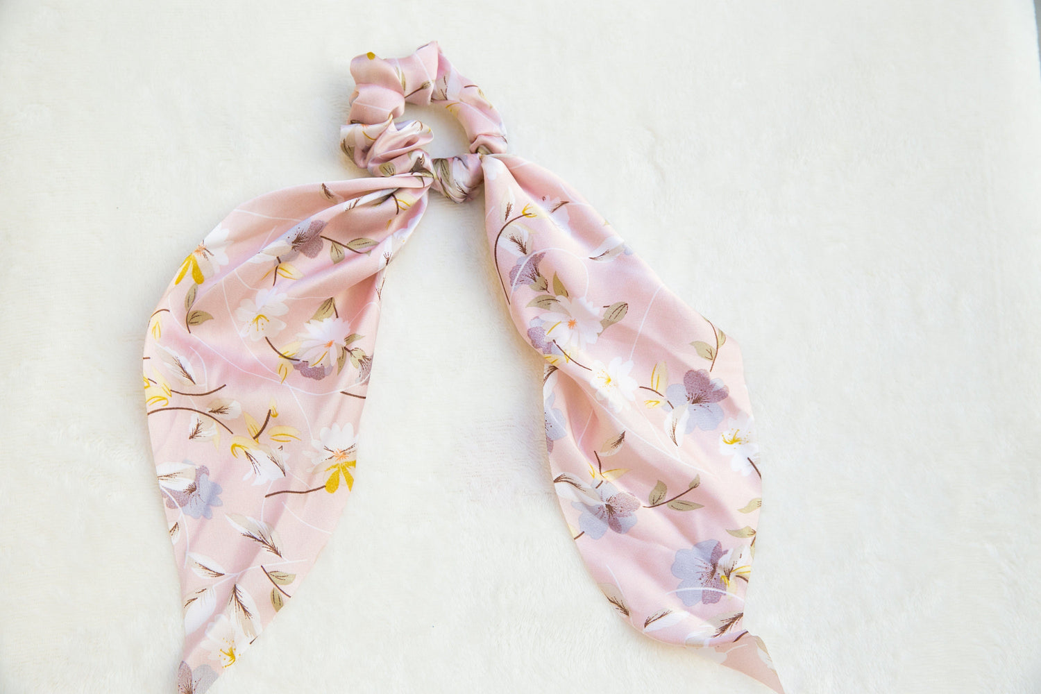 Soft Satin Scarf Scrunchies, elegant Hair Scrunchies Scarf, Floral Hair Scarf with knot, gift for her, silky Elastic Hair Tie, gift for her