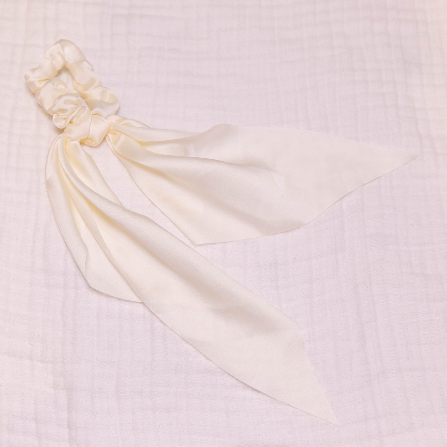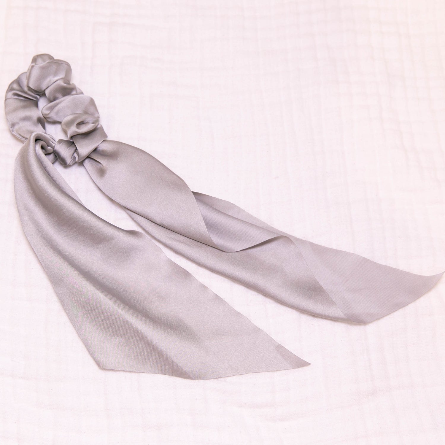 Lightweight, smooth, silky hair ties, scrunchies with long ties with elegant color tone.