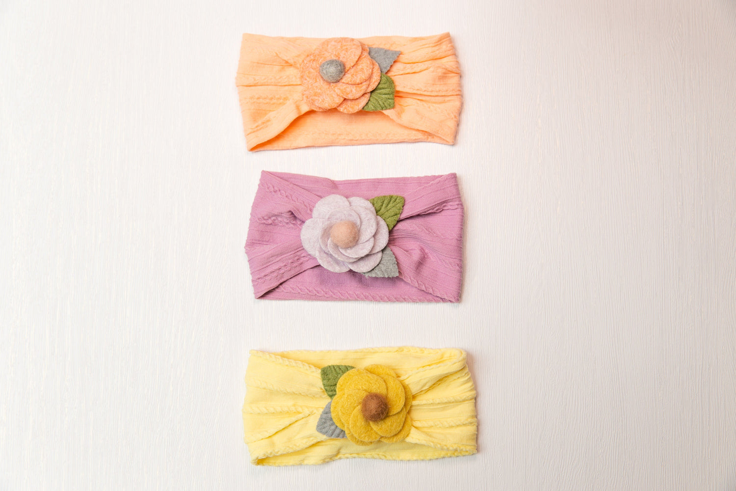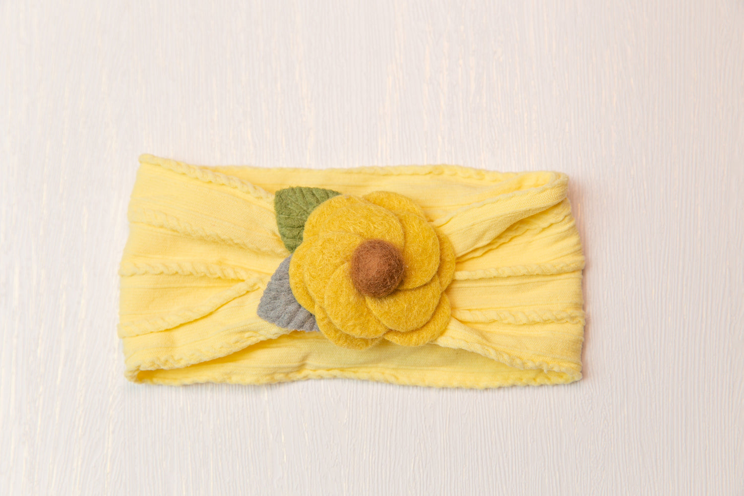 flower headband. Attached to a one size fits all nylon headband. Our nylon headbands are great for 3 months - 2 years old