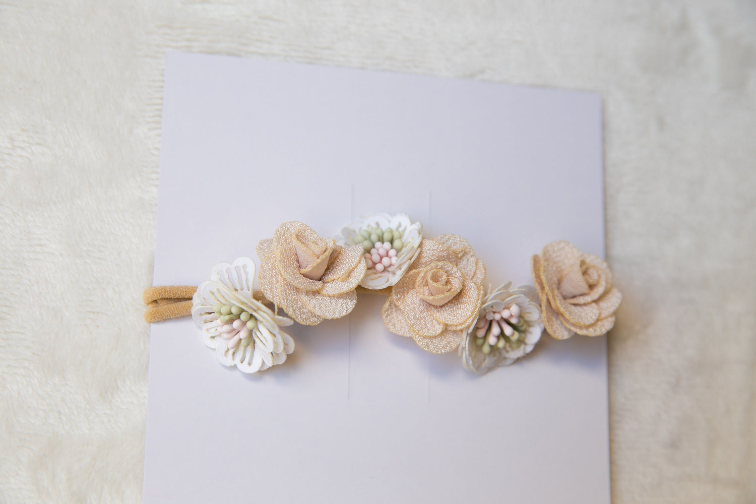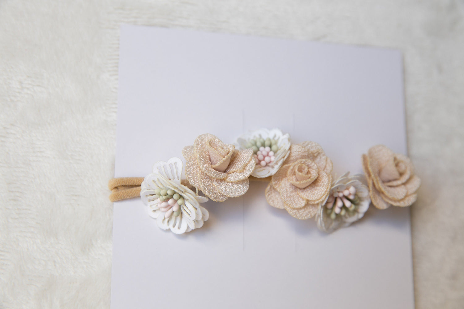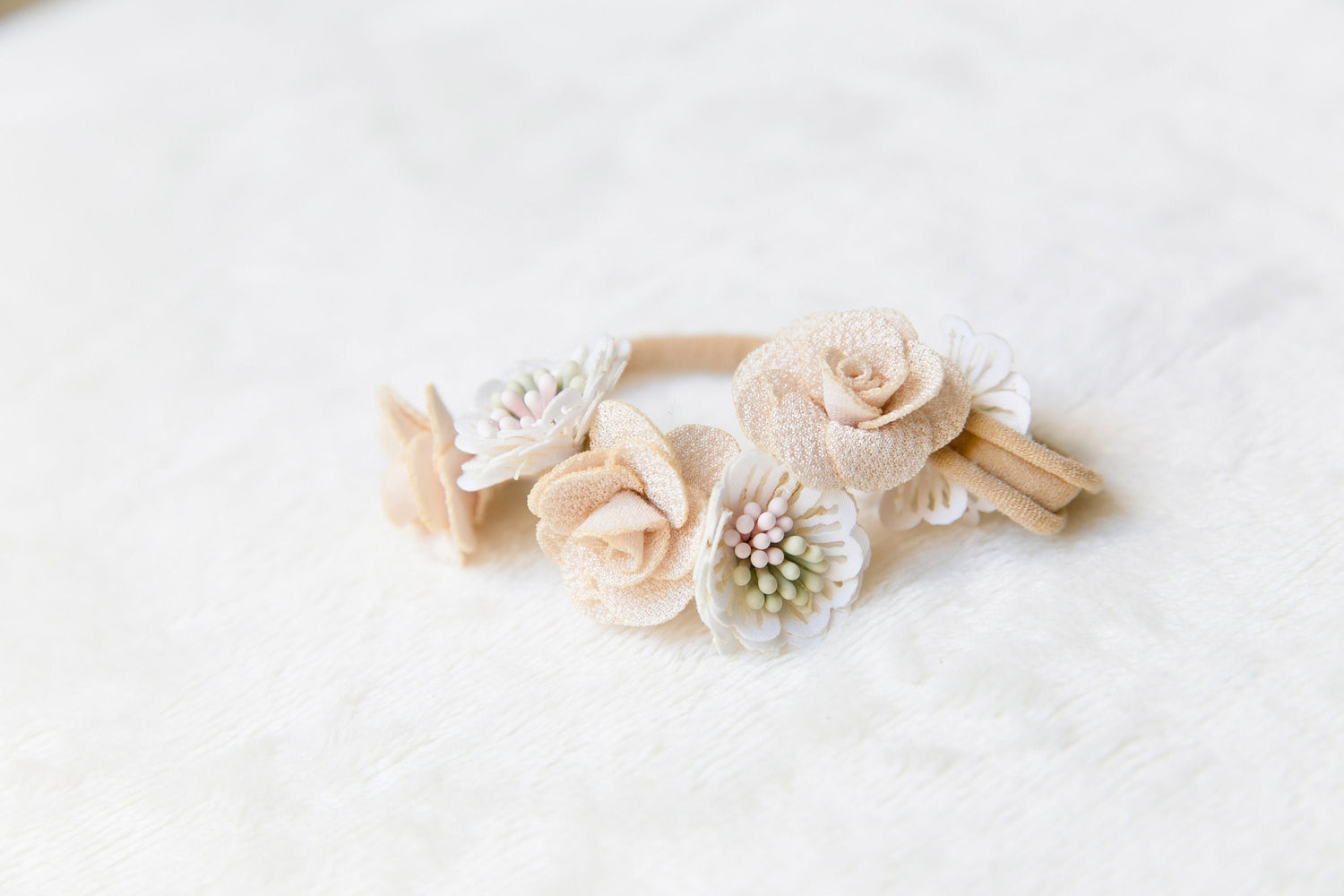 Unique Floral Baby toddler flower headband, Exquisite flower girl headband, infant flower crown, baby shower gift white beige peach headband