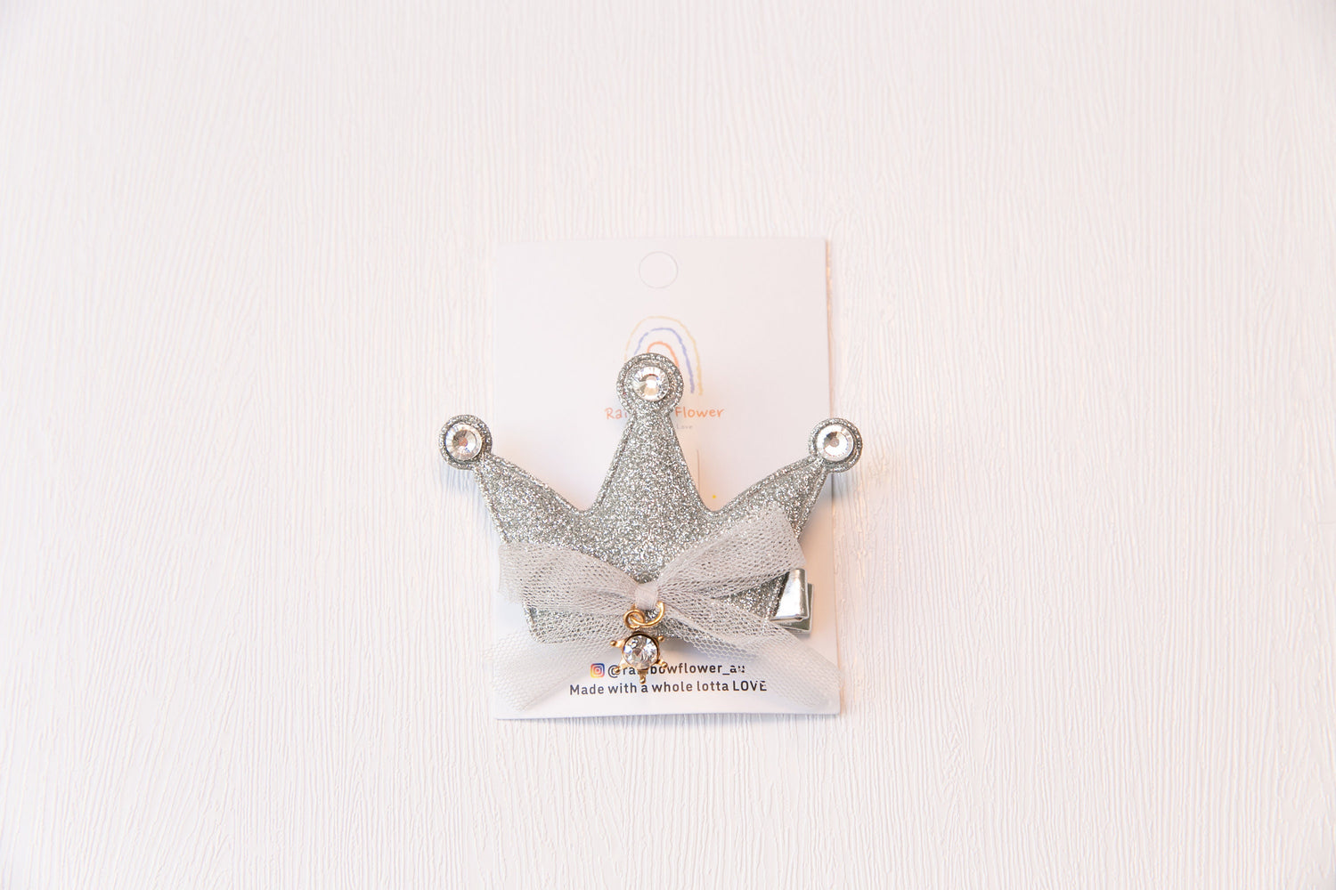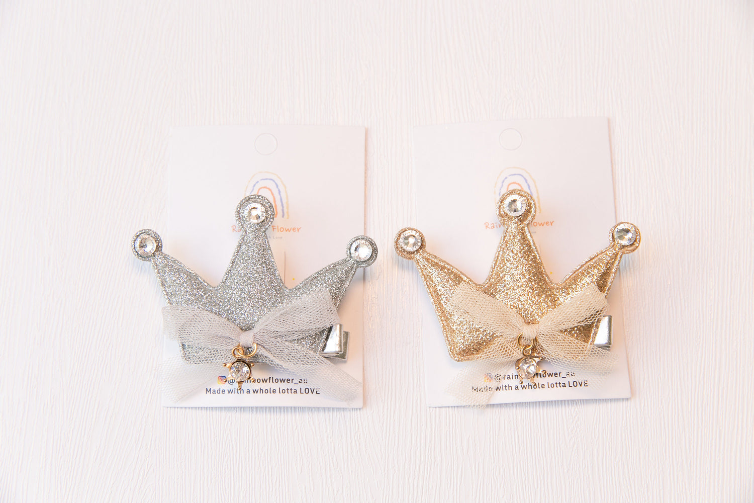 Unique Golden Silver Princess crown hair clip with rhinestone baby girl toddler kid hair bow accessory, birthday girl hair clip queen cute