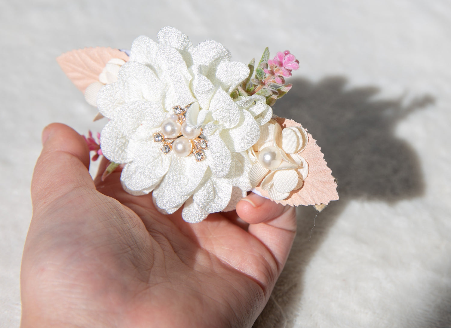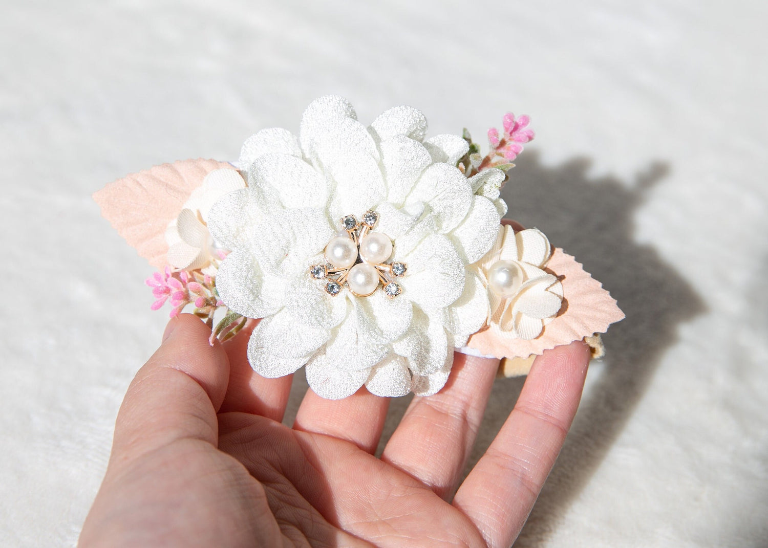 Exquisite White Beige Hairband for Infants and Toddlers, adorned with stunning rhinestones and pearls. This hairband is meticulously handmade with great attention to detail, ensuring excellent quality.