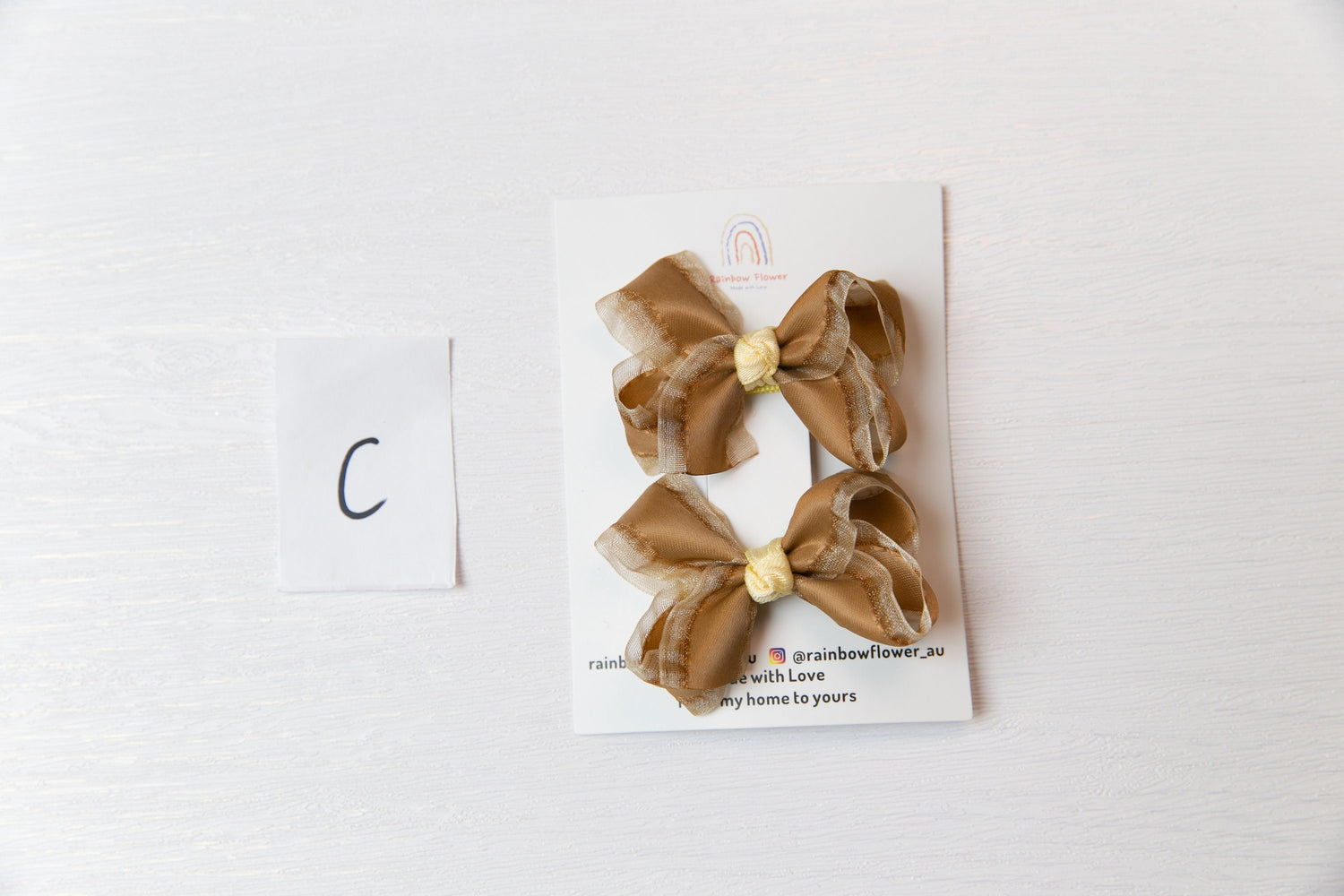 Yellow Orange Lemon light brown earthy tones Hand tied Hair Bow clip set